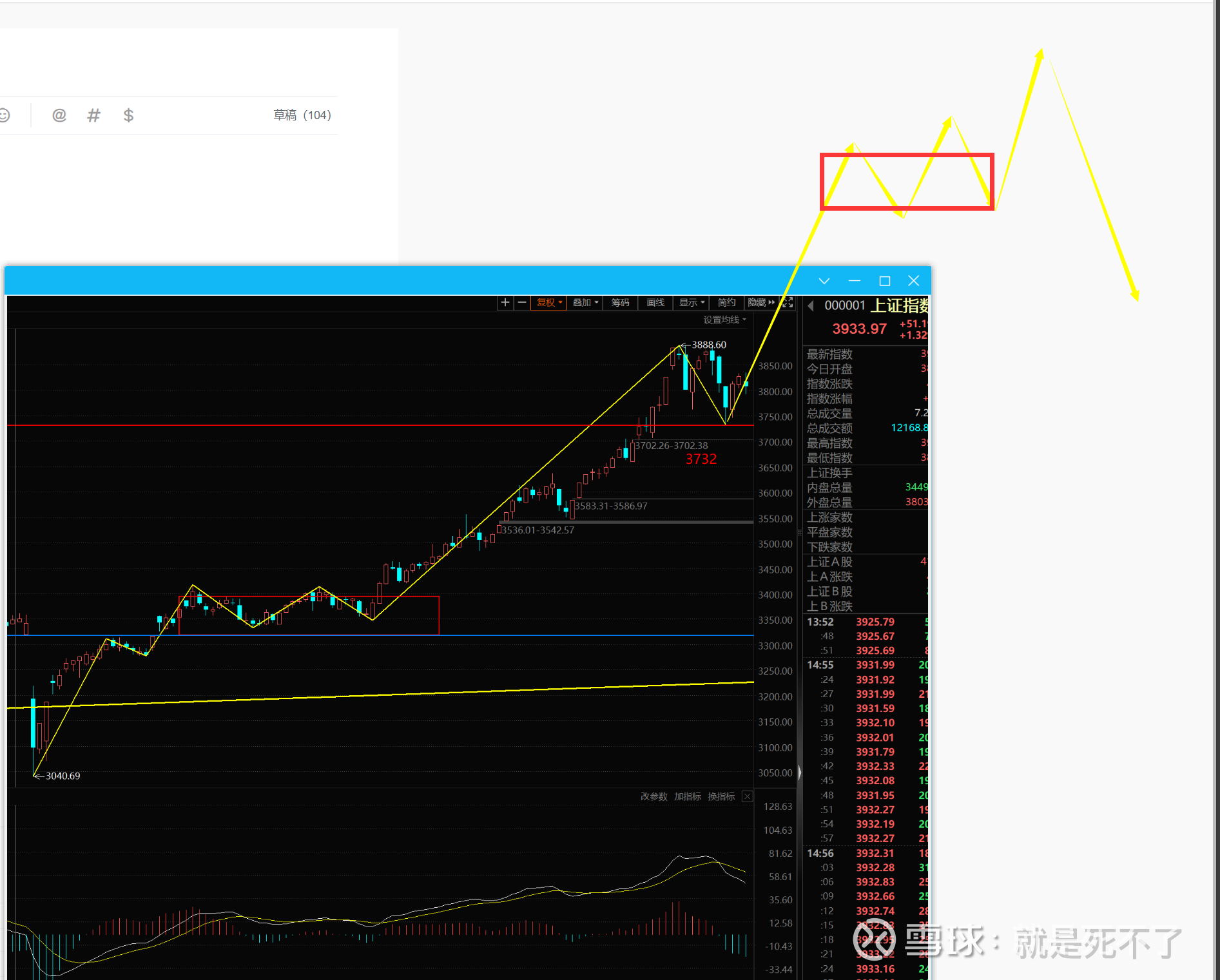 上证5分钟,明天回抽3921做1个5分钟后继续上,或者干脆直接上涨,回抽3936后继续走加速。