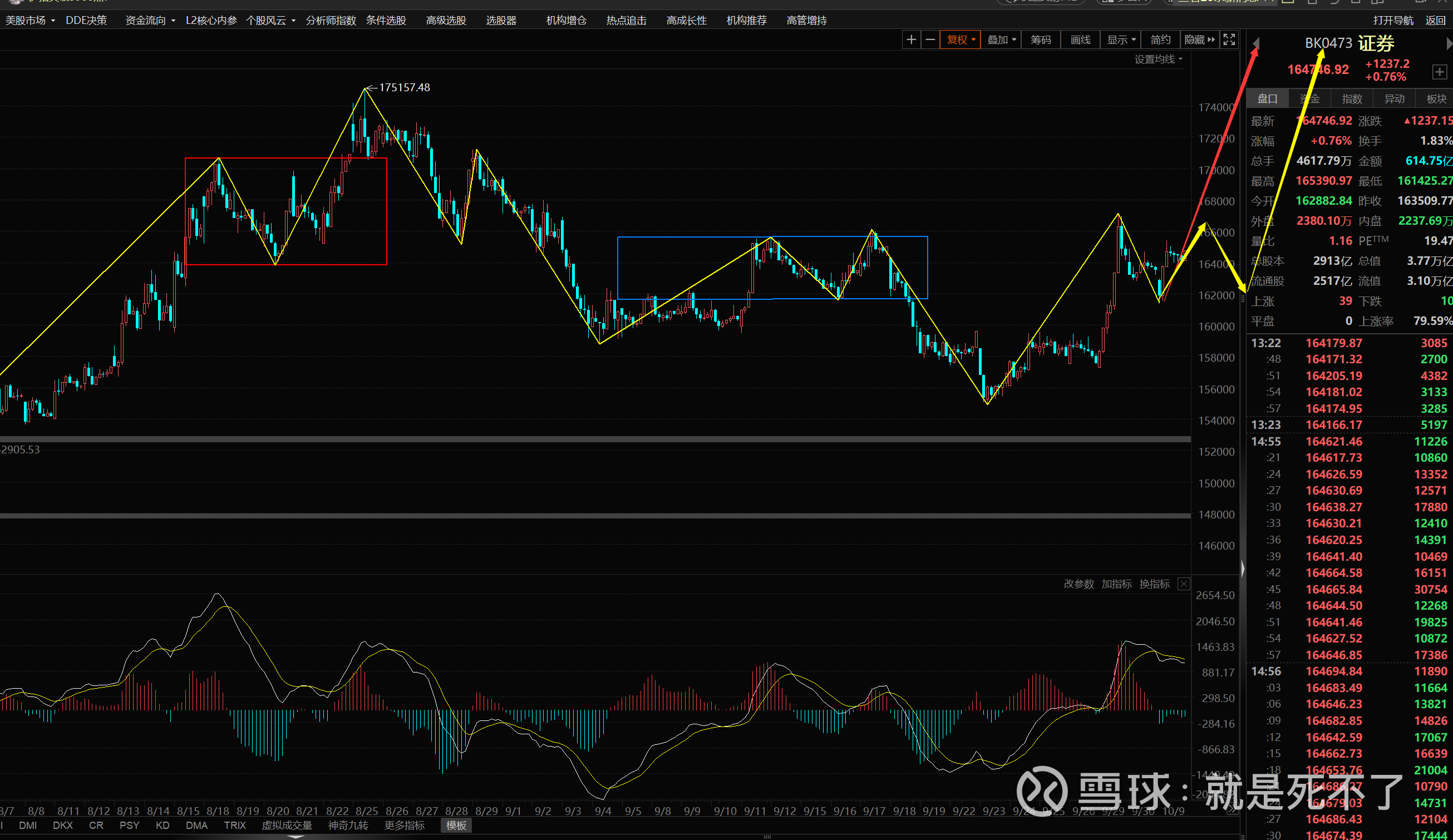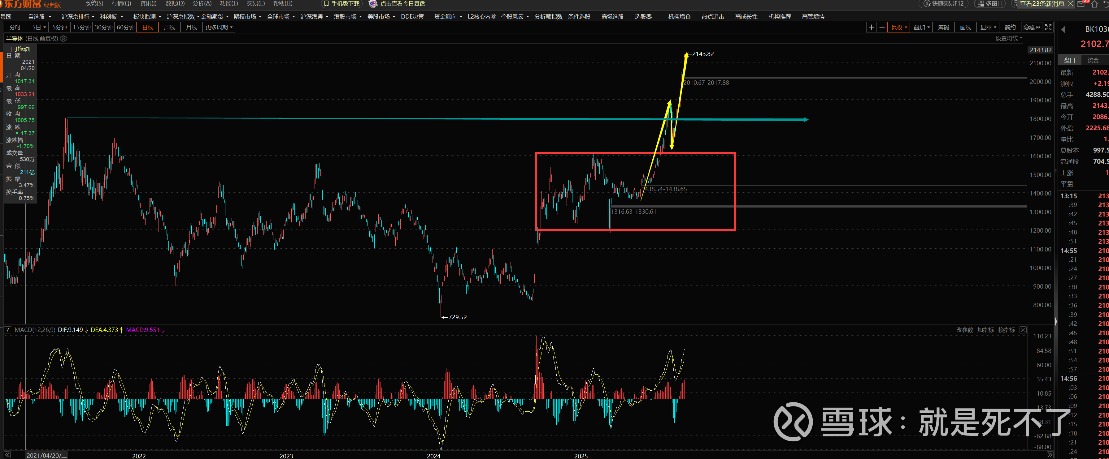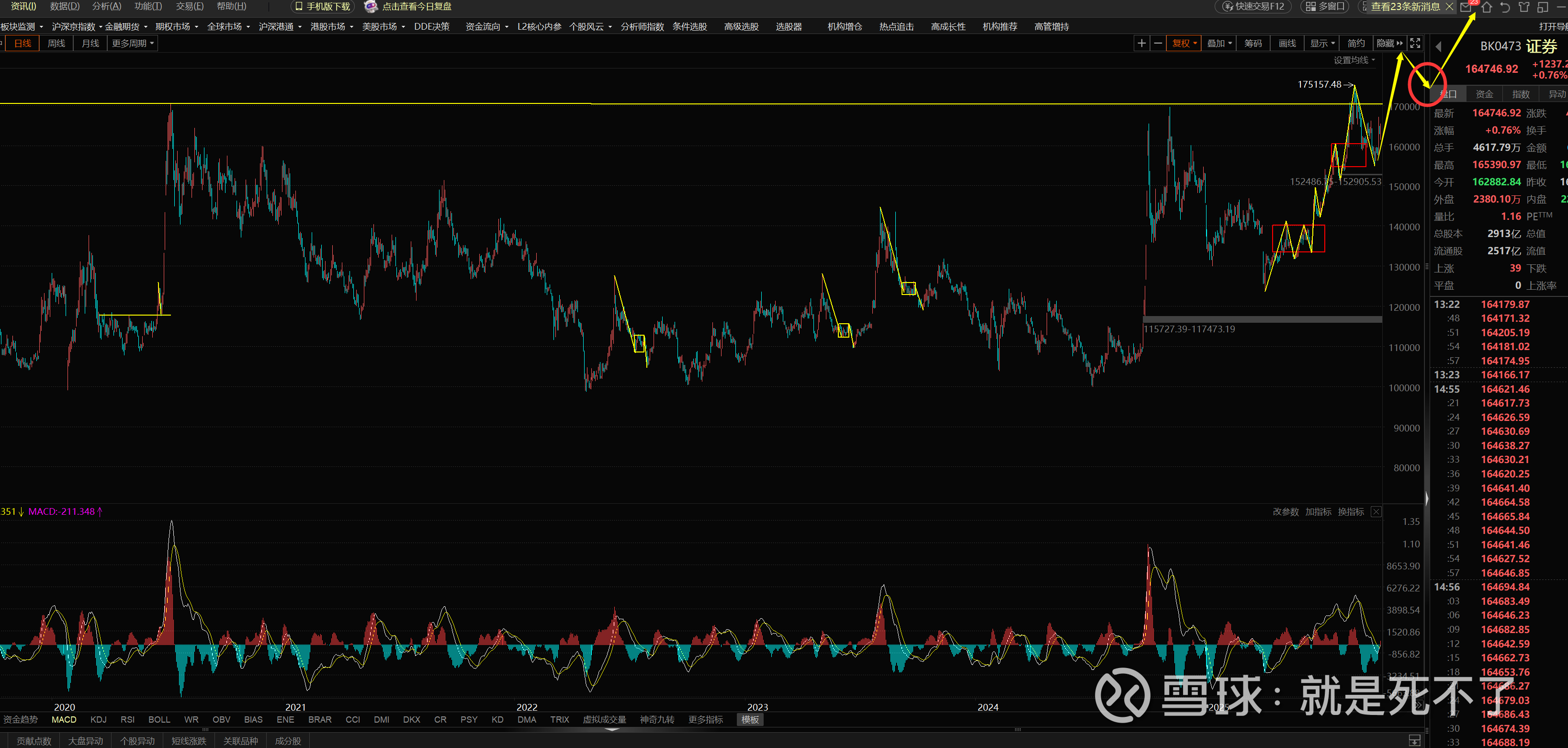 证券日线图,最关键的就是要突破去年的高点并且形成回抽确认。