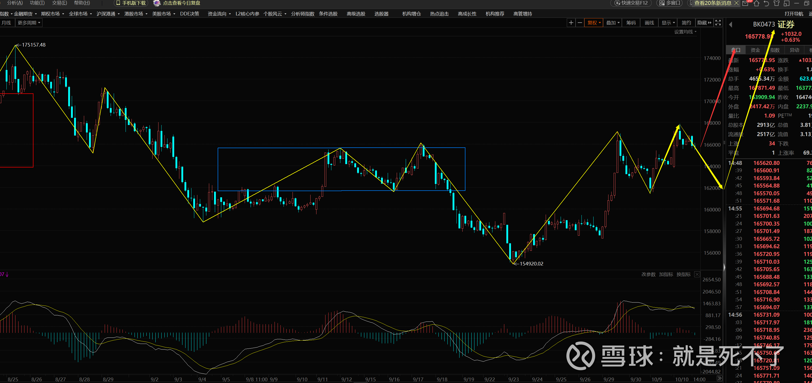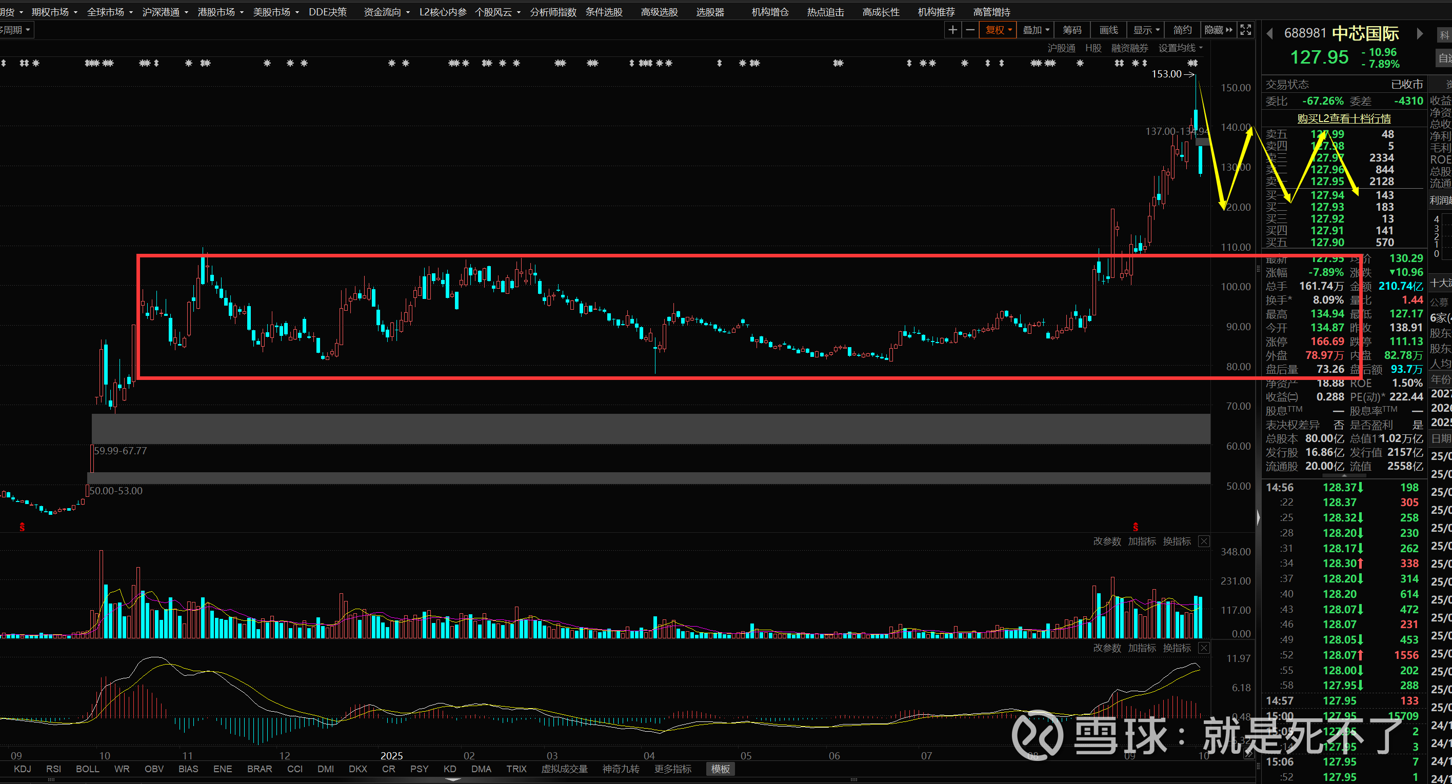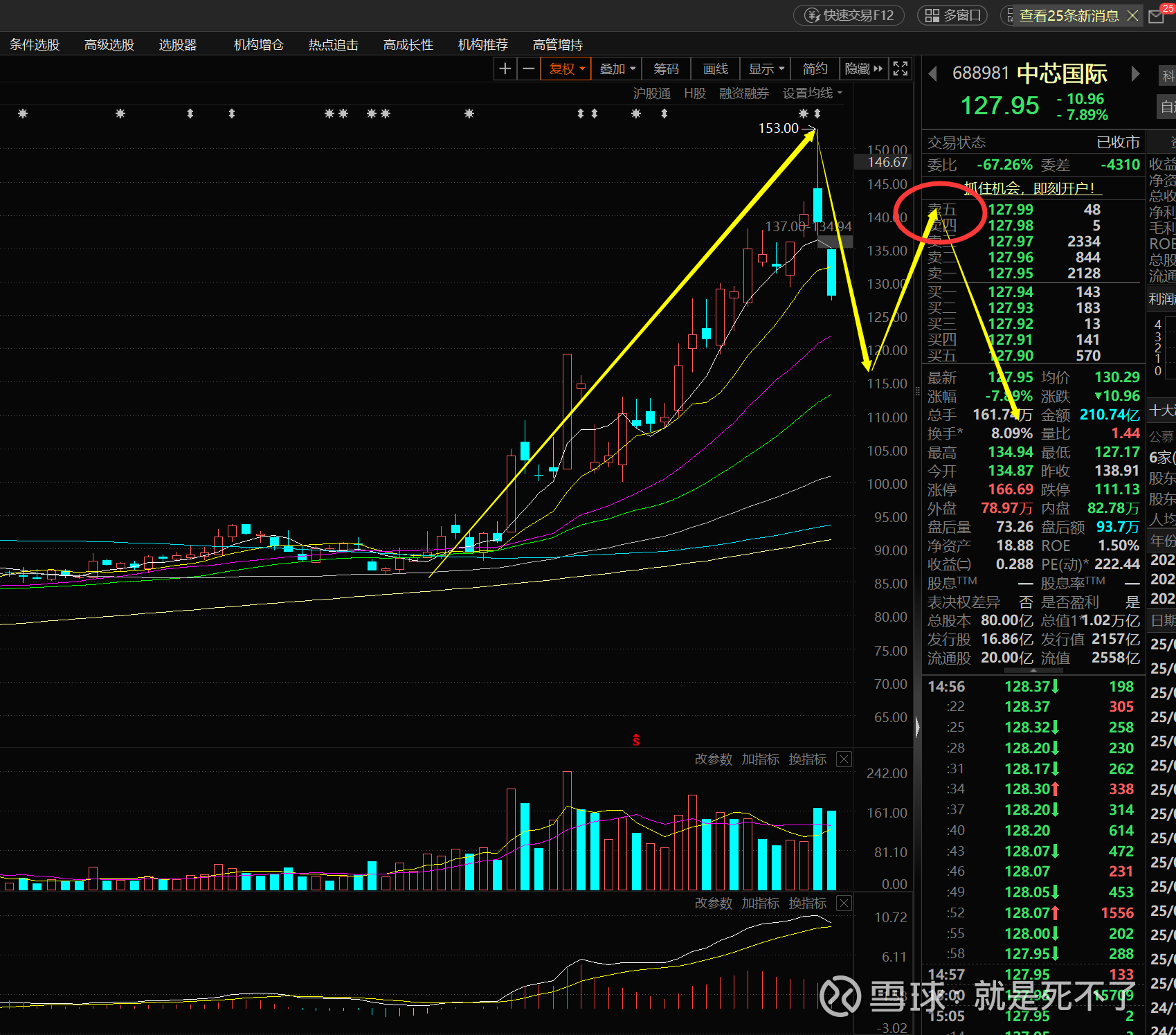 比如下面的中芯,如果后面反弹出现一个高点低于153,就是卖点。