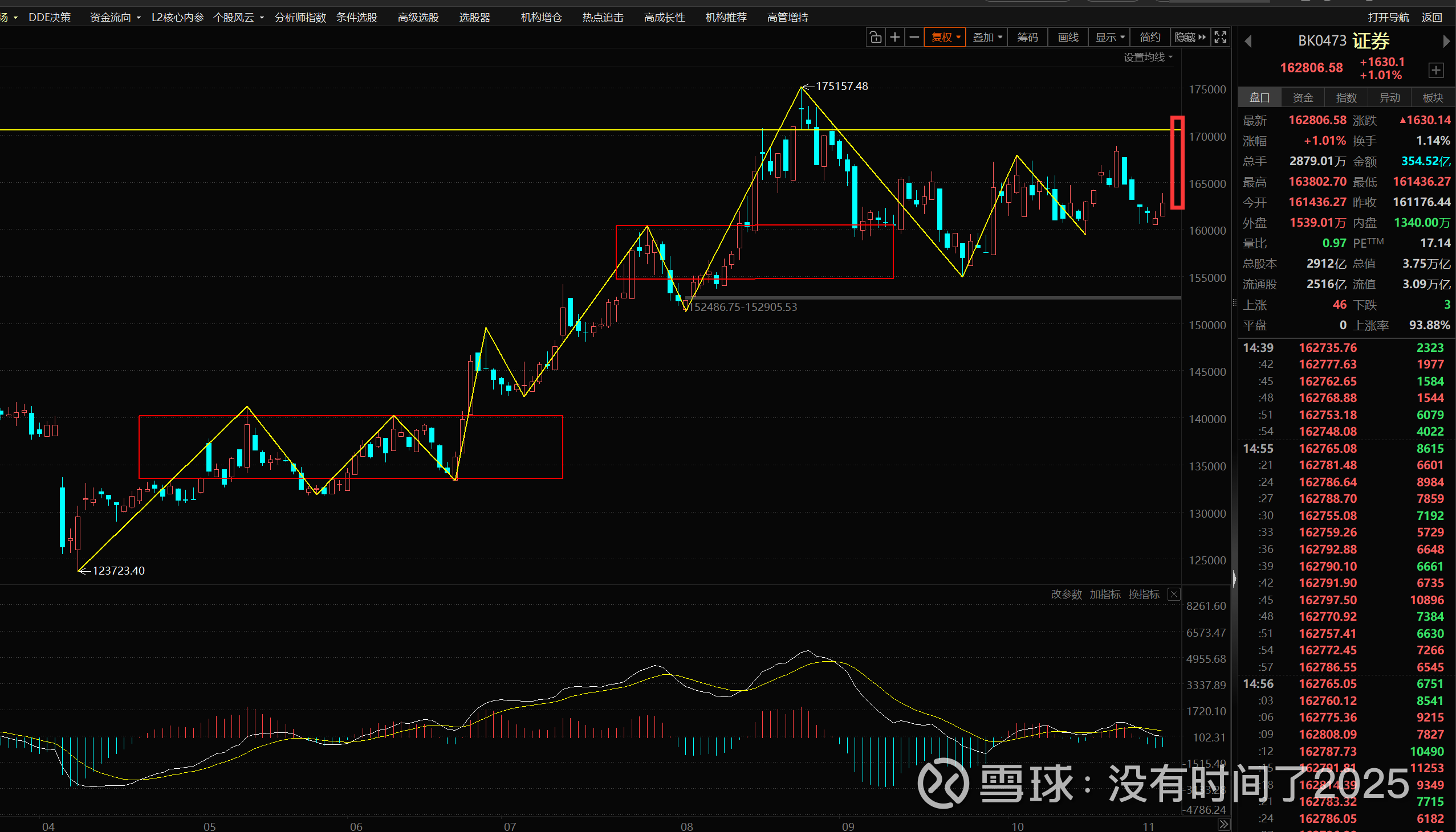 之后券商没有按照我预期的,站上去年的高点,它就在10月29日出了一下力气。