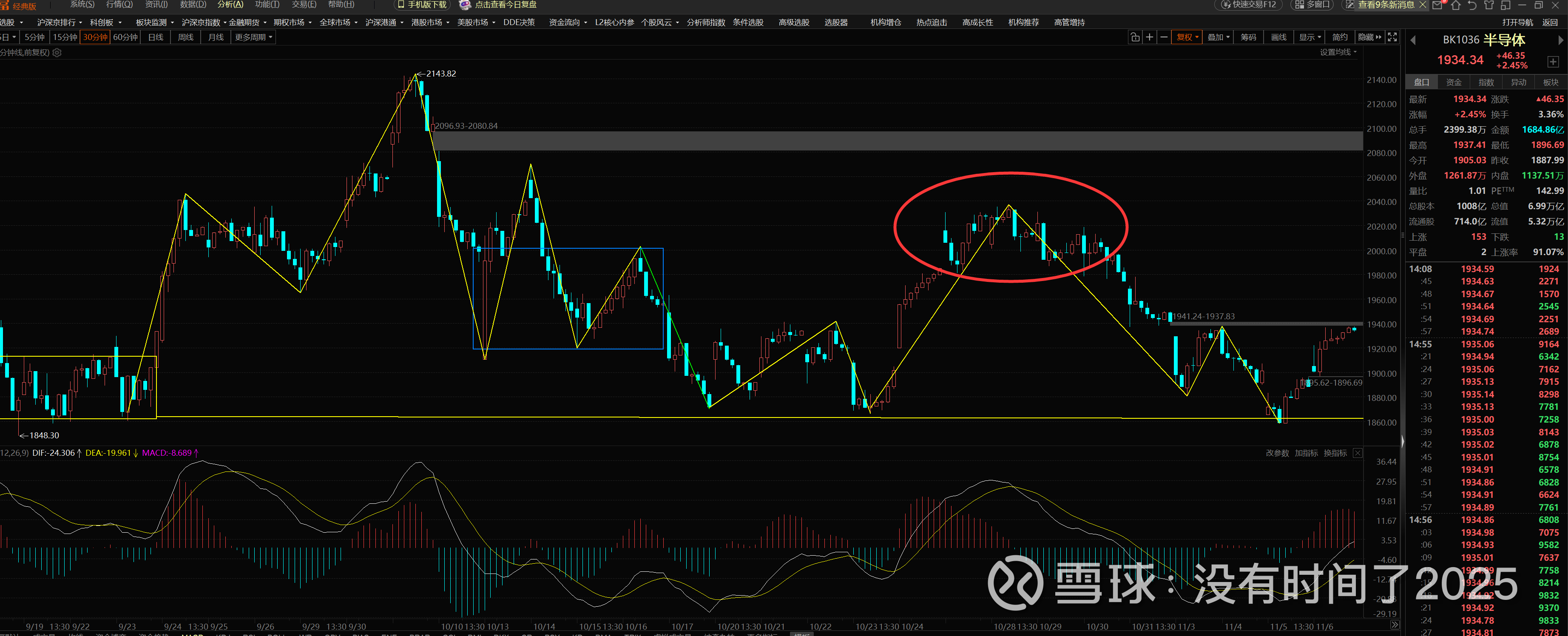 半导体30分钟,下图红圈的位置。当时券商结合科技上涨使得指数涨上了4000。