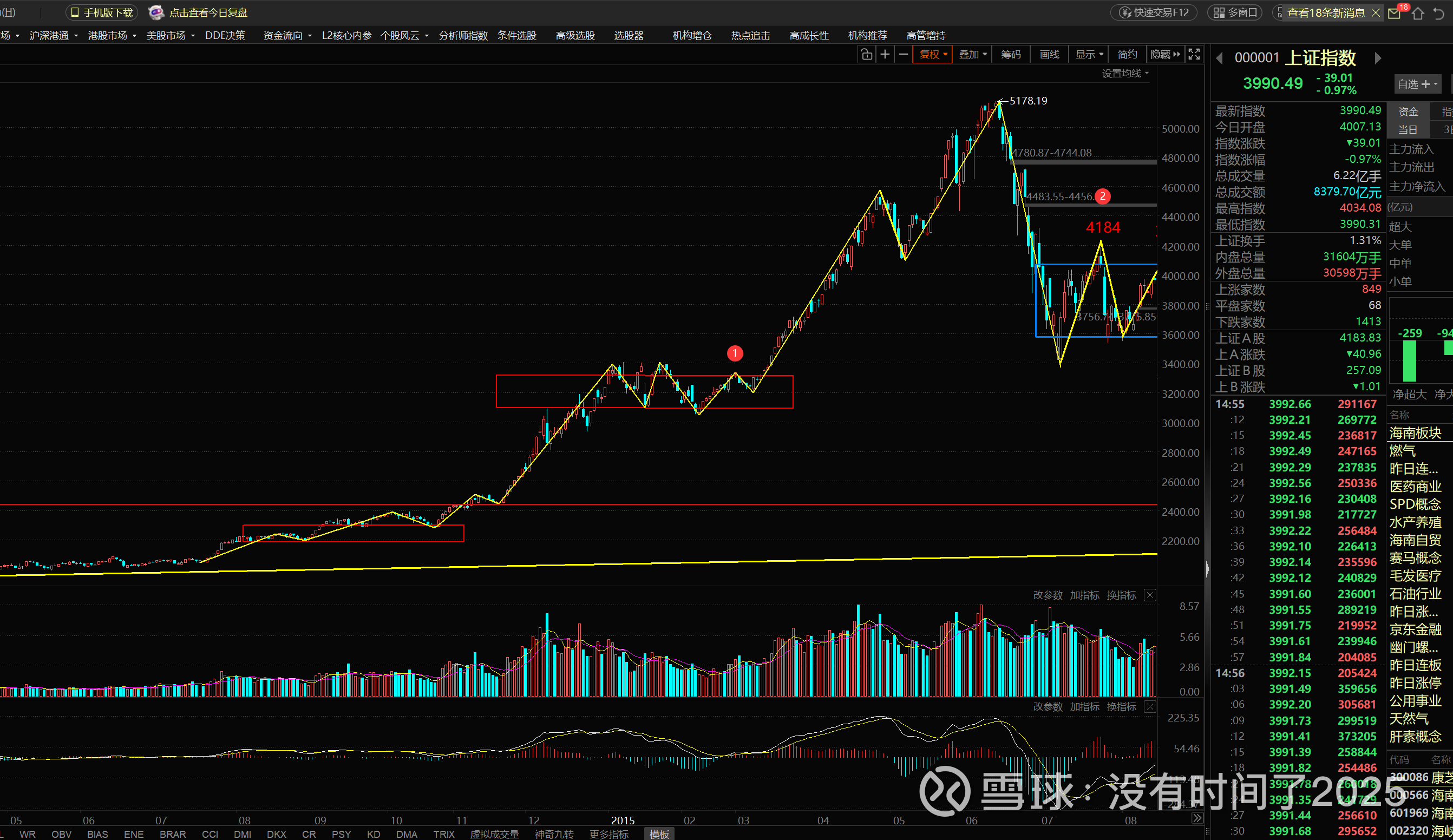 4000多点的也有一个2卖,因为和前高点位就差了几点,所以严格意义上,这是一个看中枢震荡的2卖,不是看顶的2卖。