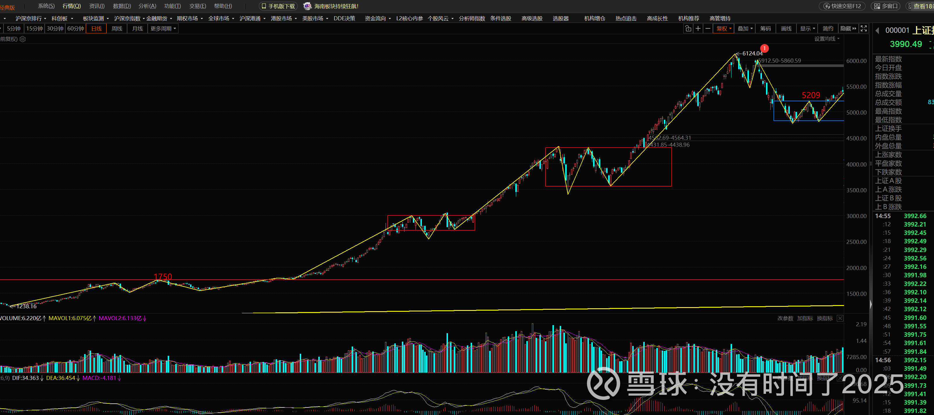 再说一点,这是上证指数的日线图, 我前天说过,如果它能控制指数复刻当初9月份固态电池的走势,我就叫它汪哥
