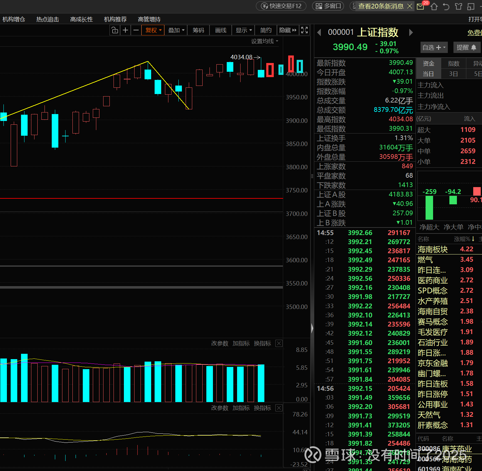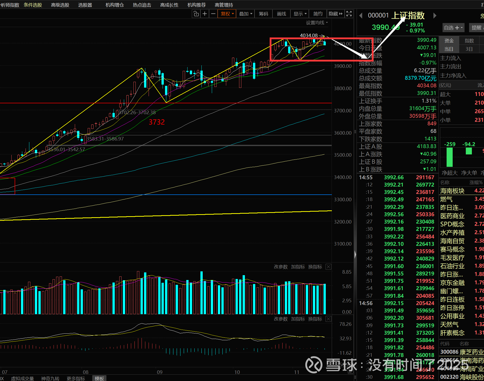 2:下周上证指数要突破4034后回踩站稳4034才算是突破成功,为什么从4025提升到了4034?因为如果跌破4034就会再次发生中枢扩展。你如果嫌麻烦继续看4025也行。我可能对这里的突破要求会比较高,因为我要防假突破骗人。