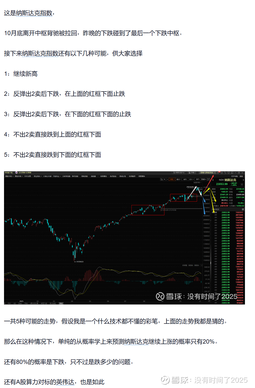 目前英伟达是日线一笔下跌中,对于它未来的分析,参考我上周五对纳斯达克指数的分析。