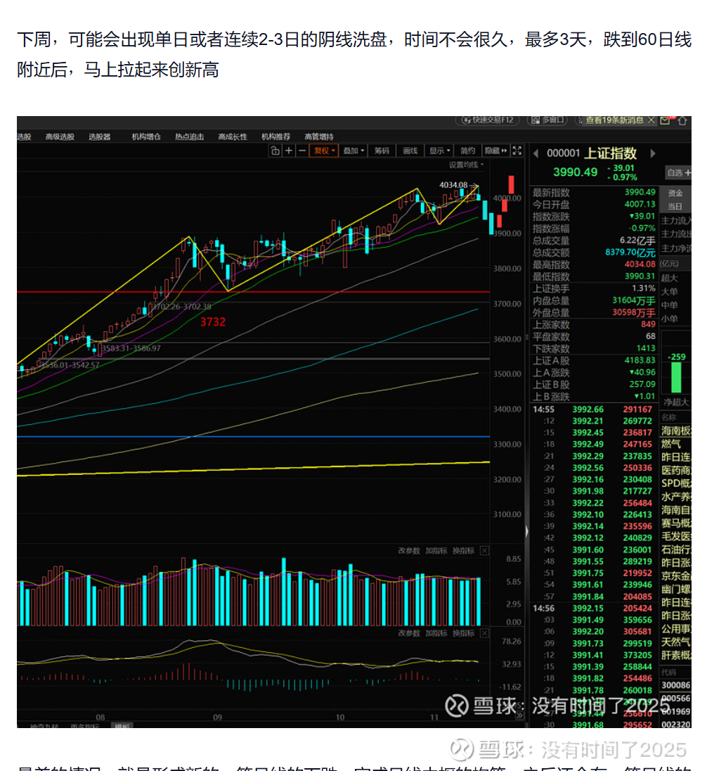 如果这里再调整,就会出现90%以上散户亏钱,指数跌破3732的崩盘局面。