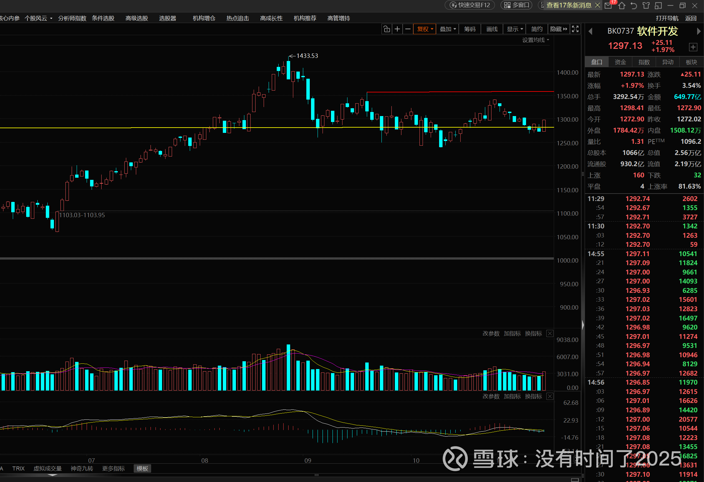 今天软件开发是放量反弹,红线是它2卖的位置,能站上去,才能视为真正启动。