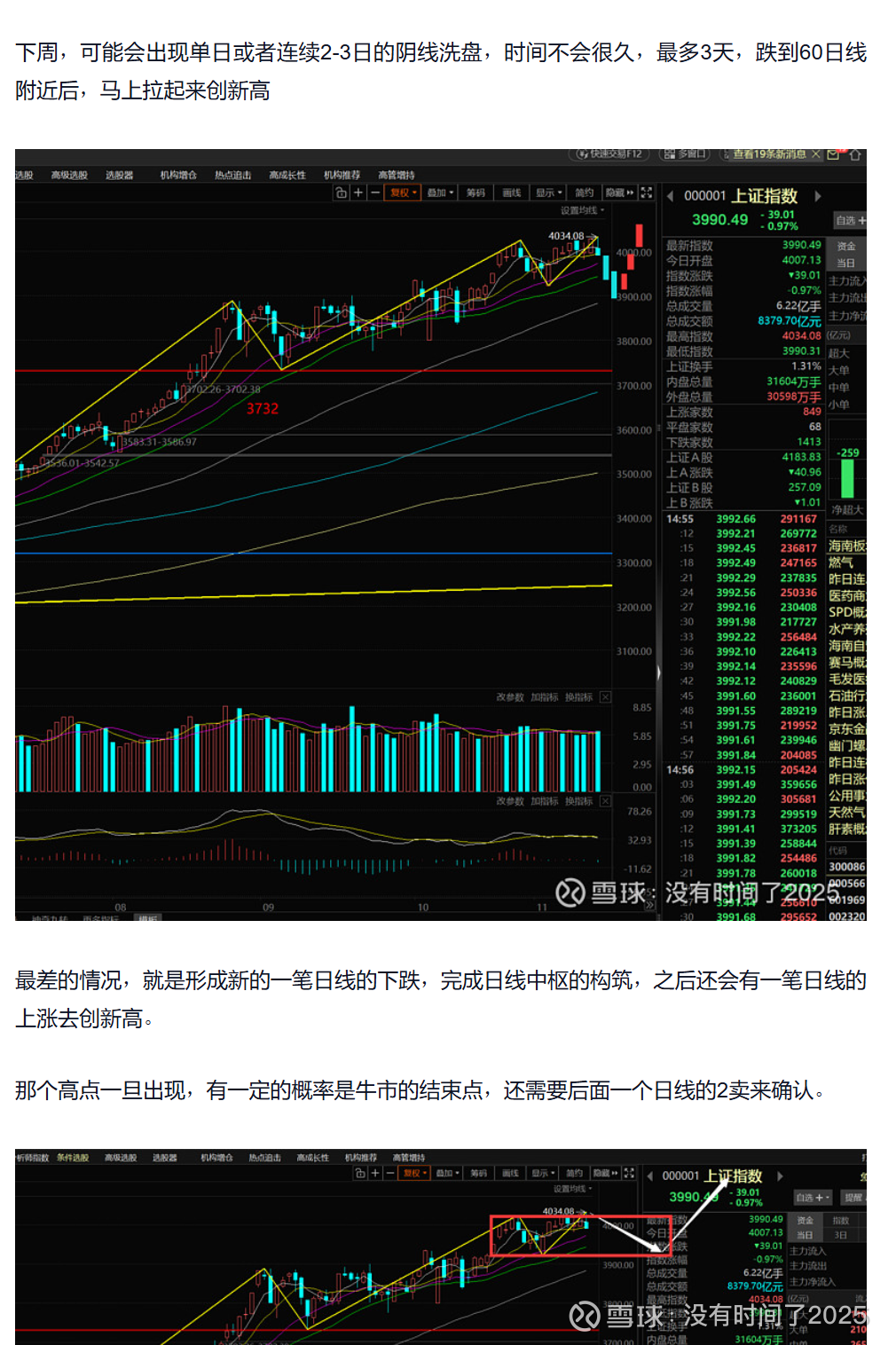 明天如果跌到60日线附近止跌后,反弹起来无力,无法快速站上3967,就是日线的2卖,要大幅减仓