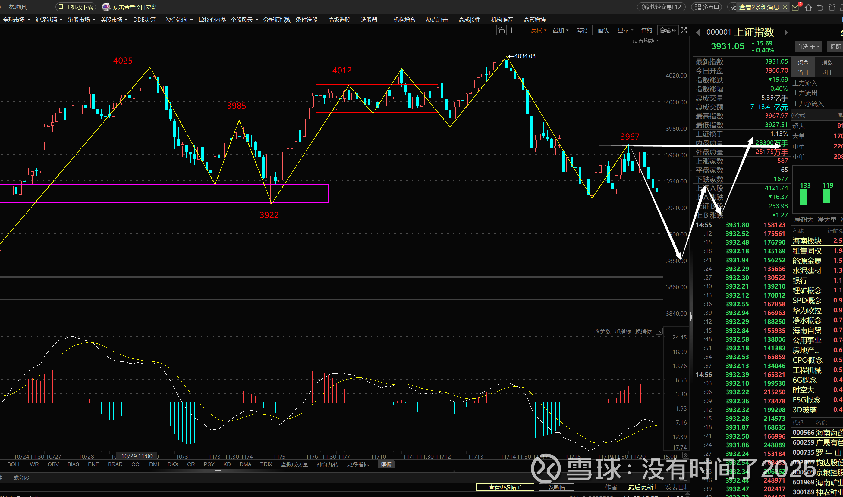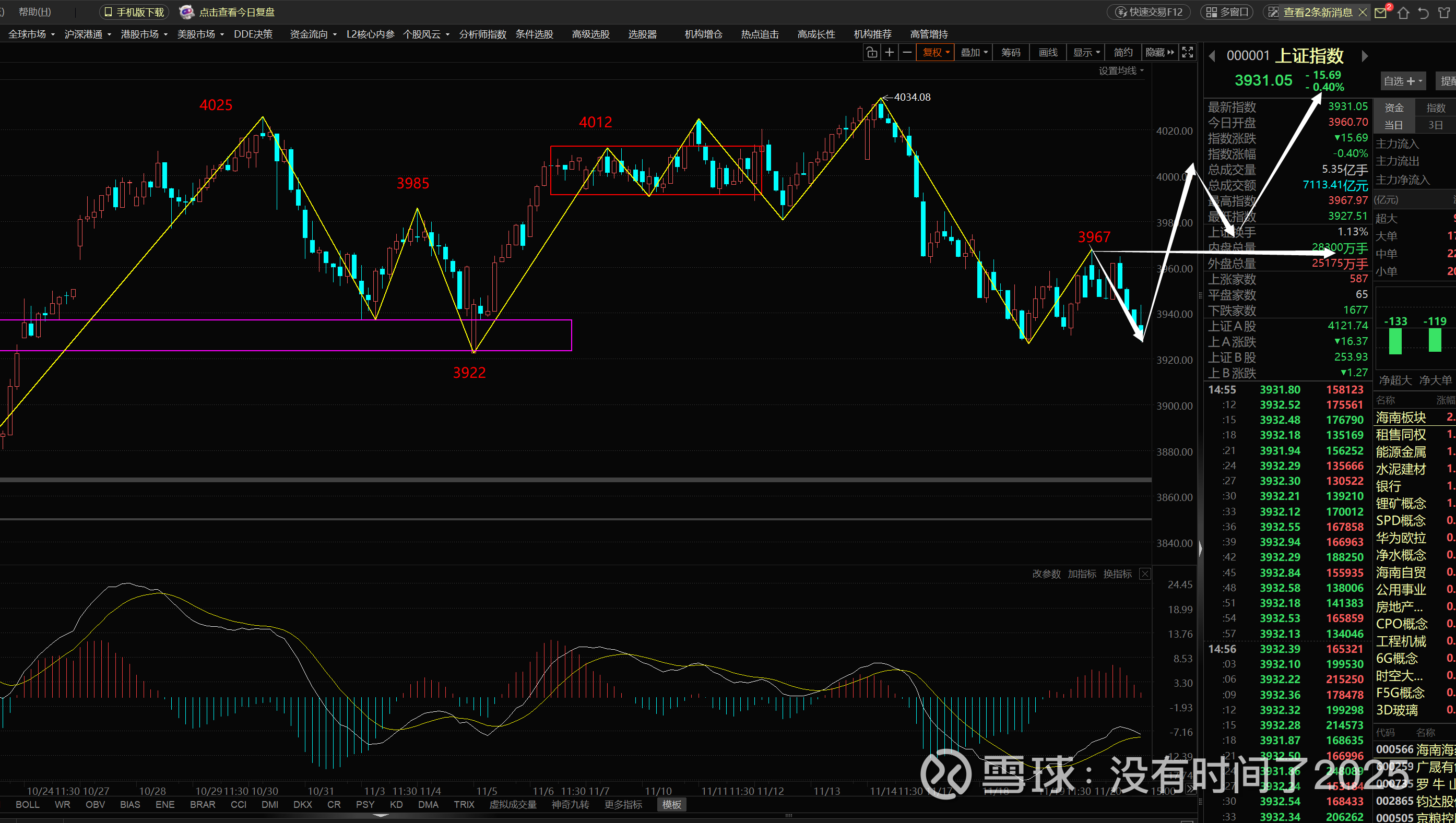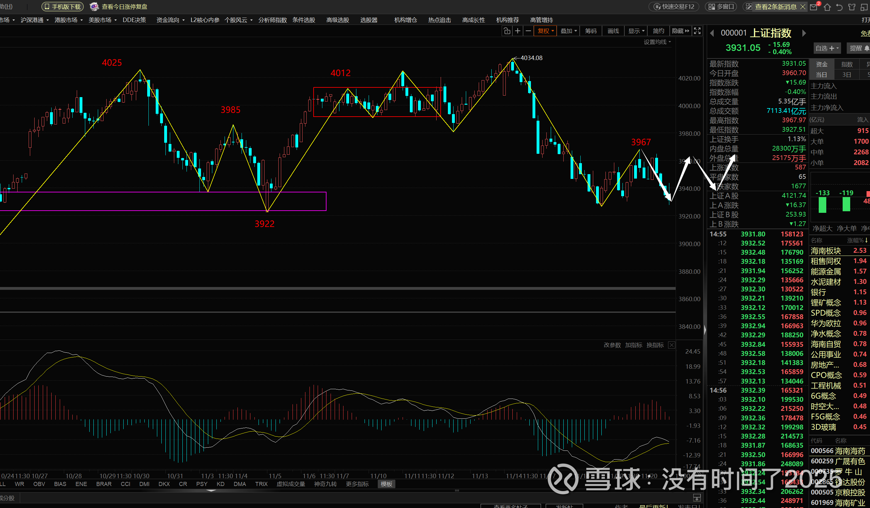 大盘在30分钟图上,出现2+3卖的合并高点3967