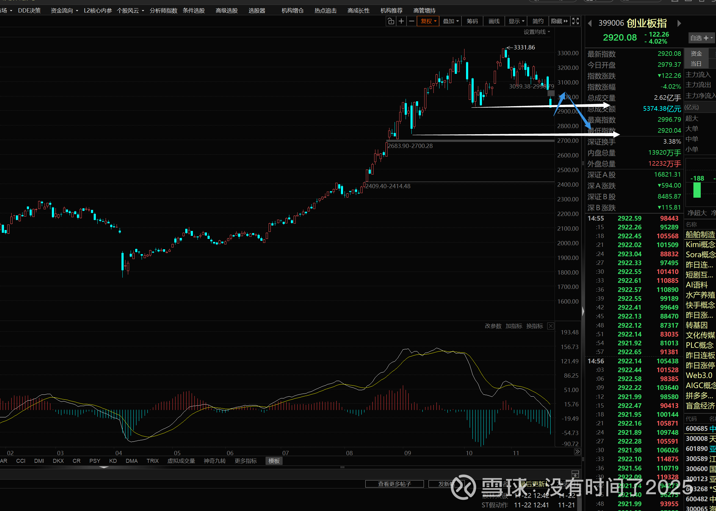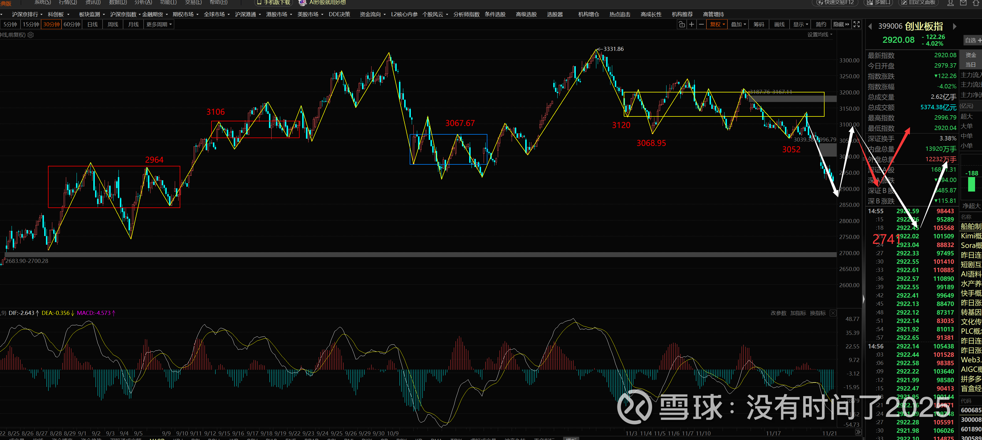 创业板,周五的大跌,跌破了2927,破了7个点,目前还处于可以挽回的状态,如果下周继续往下破位要去找2741。