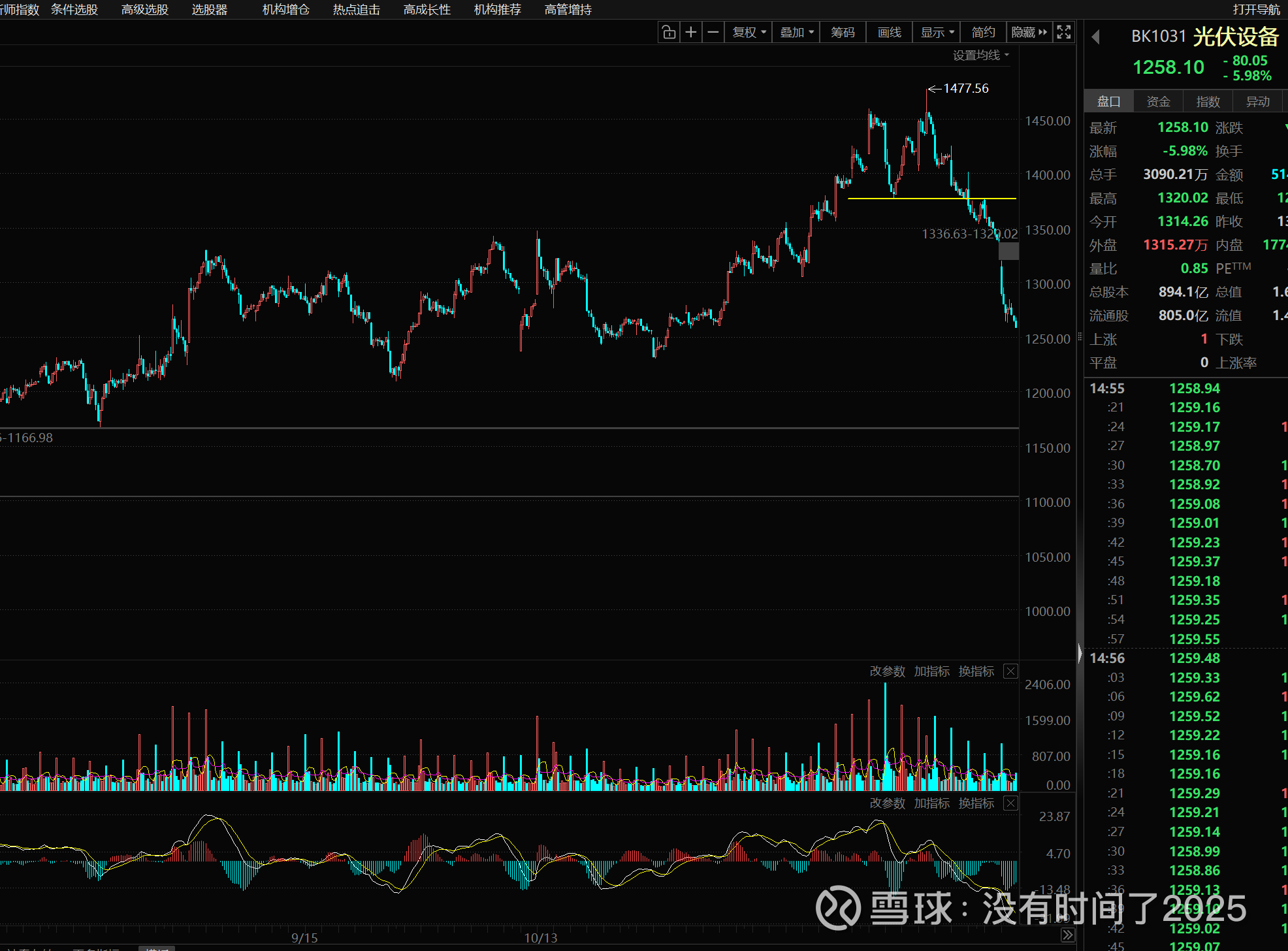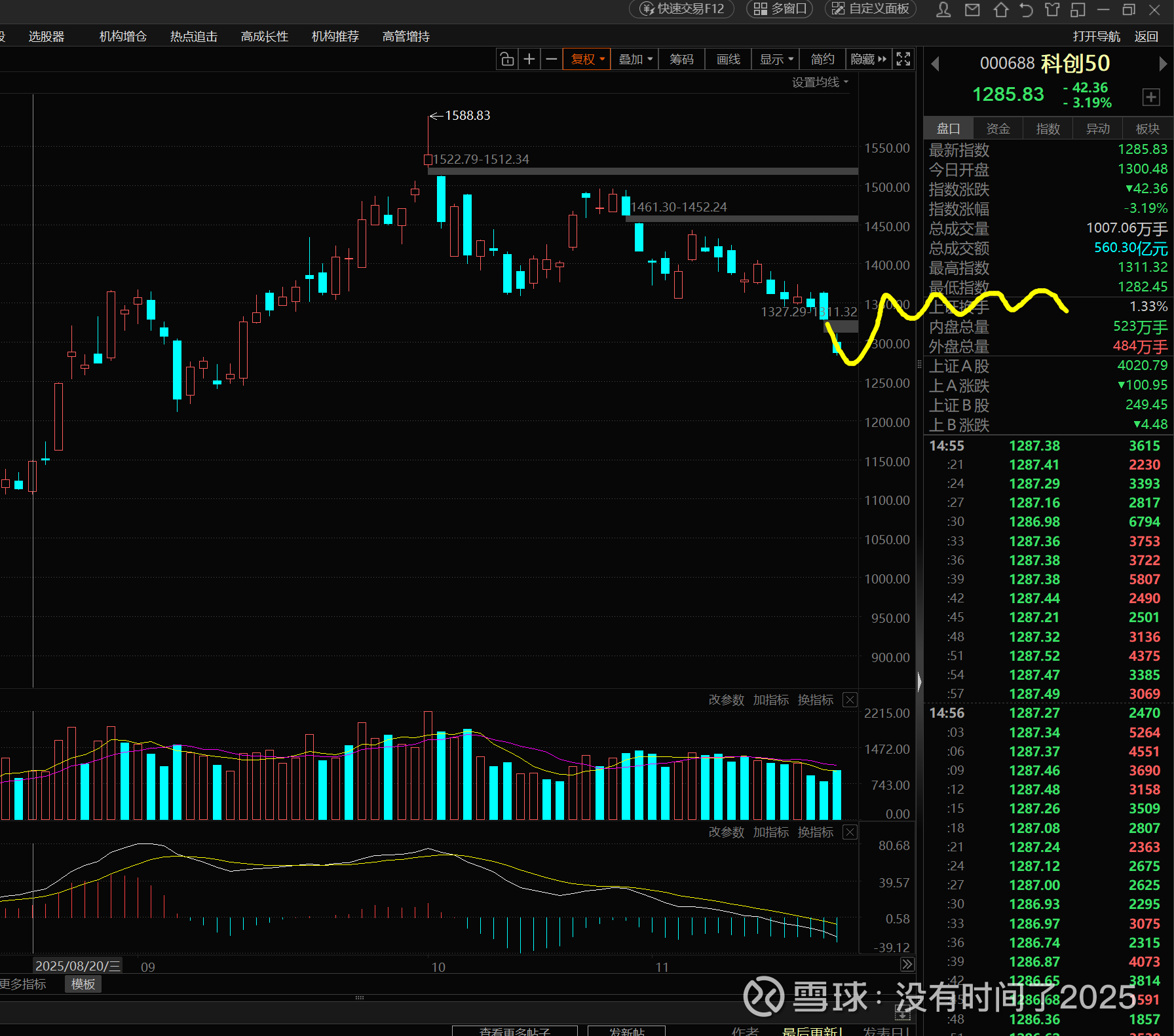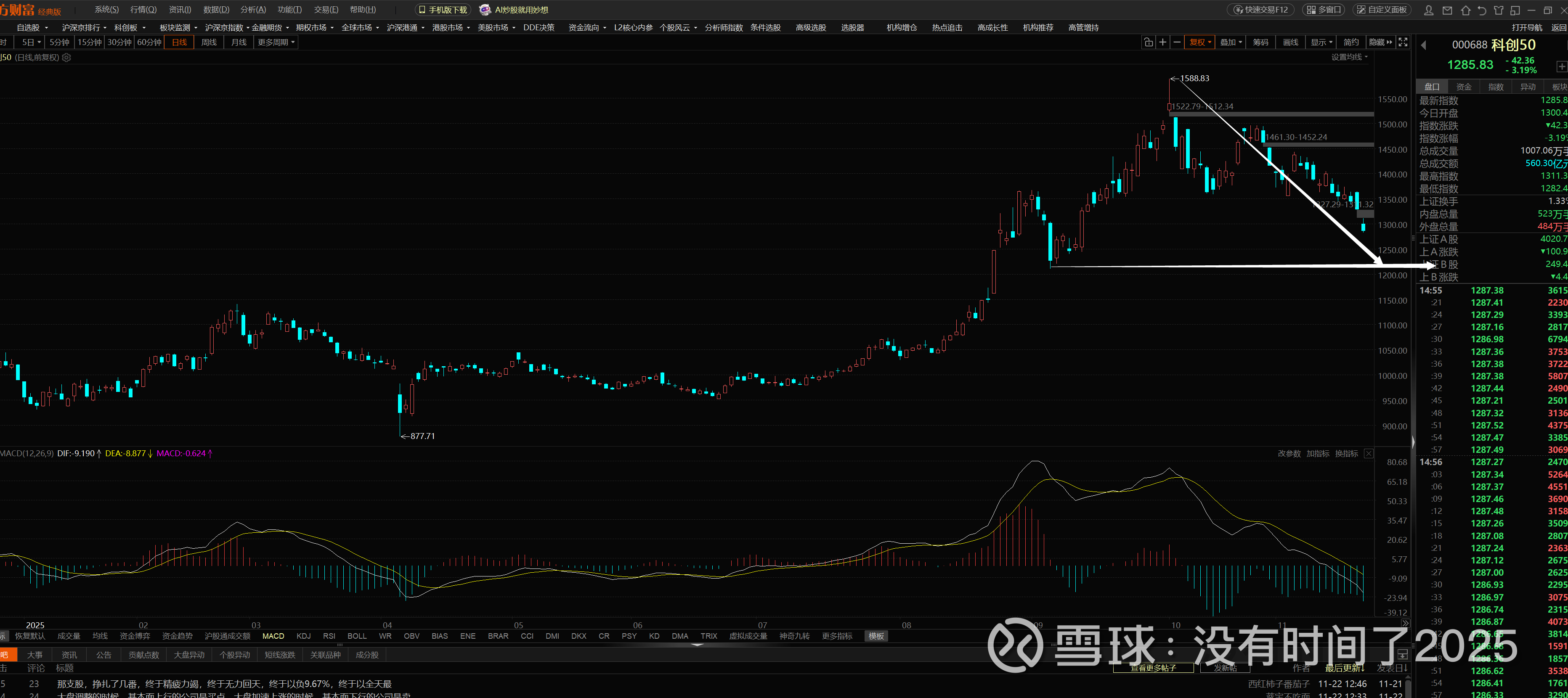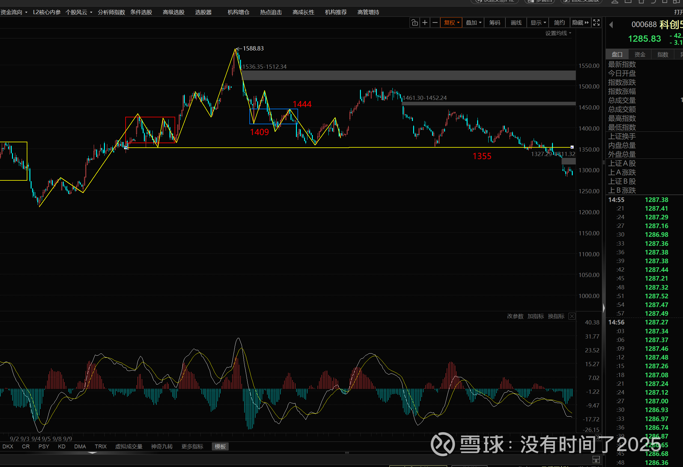 科创30分钟,1355这个位置是9月中旬启动的位置,也是10月下来后反复挣扎的位置。