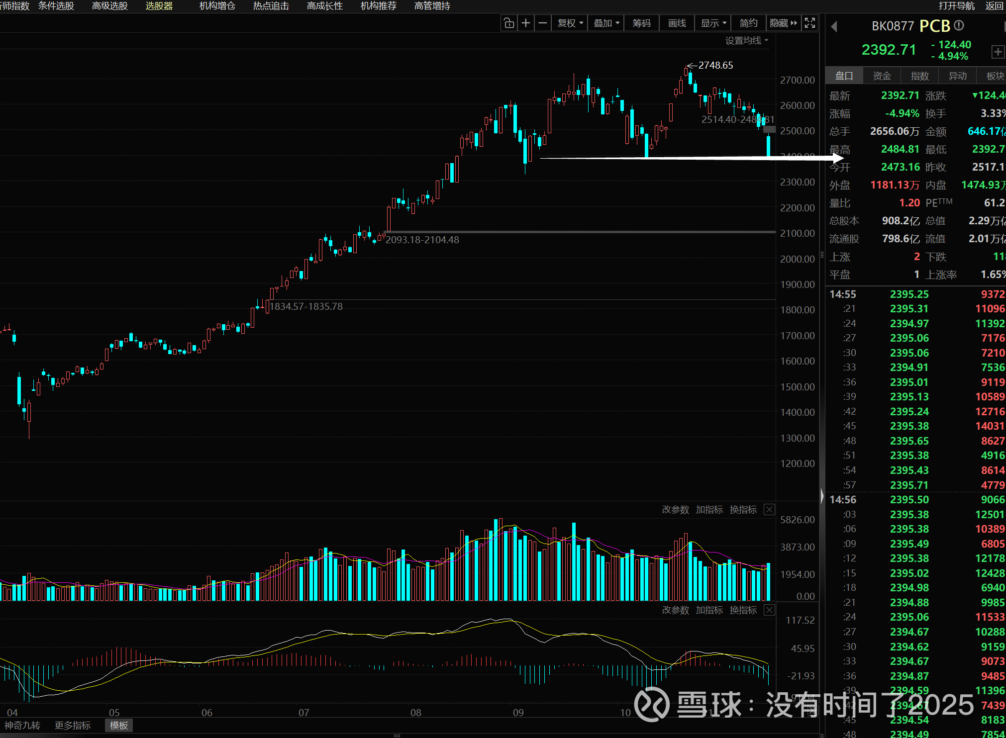 PCB,对于PCB我比CPO稍微看好点,因为PCB板块还没有出现日线级别的2卖,周五刚好在支撑。