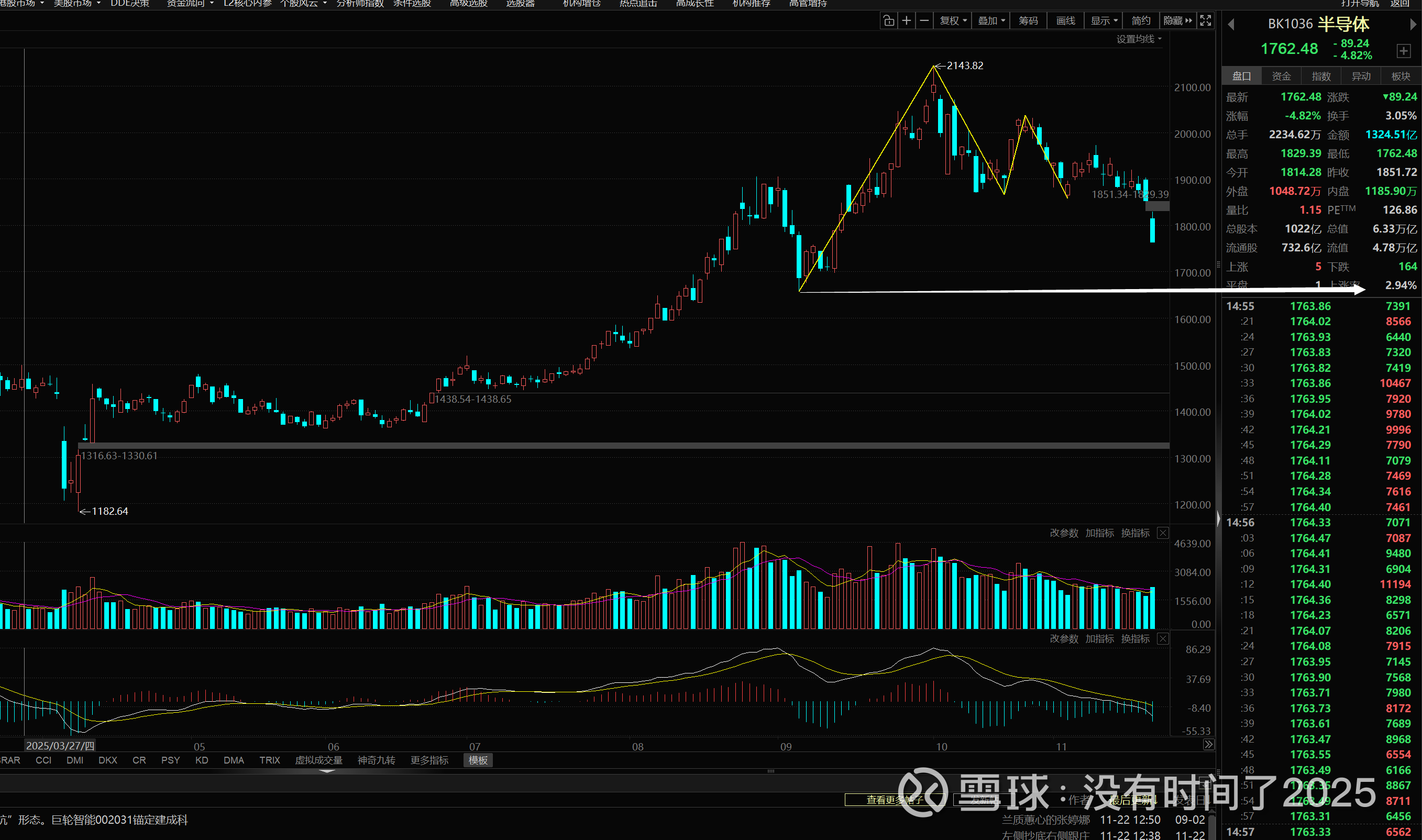 这笔30分钟的杀跌很凶,从11月14日跌到18日还没停,下周反弹过不了黄色的颈线就是3卖和2卖的合并,要减。