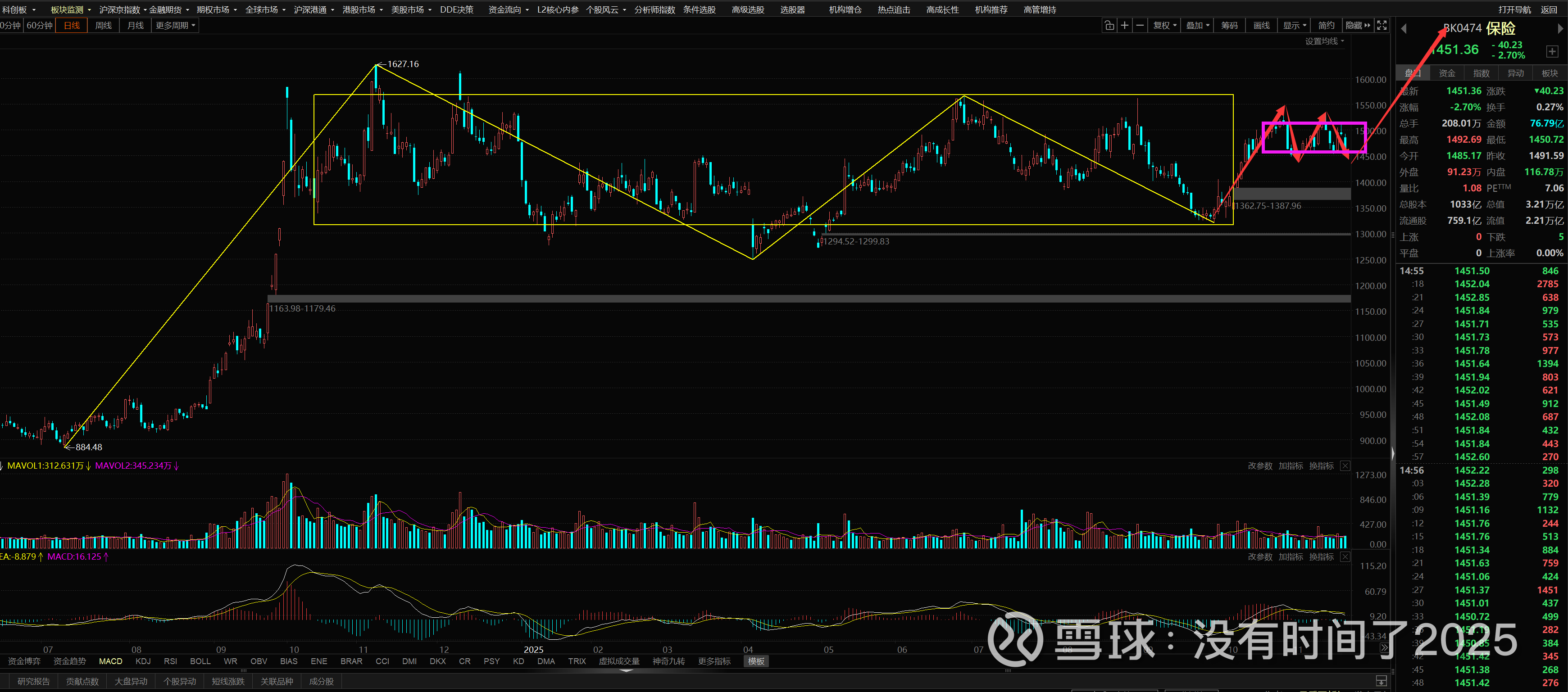 右边的粉色中枢只要不出现往下的破位,保险板块未来也是一副要走主升行情的样子。