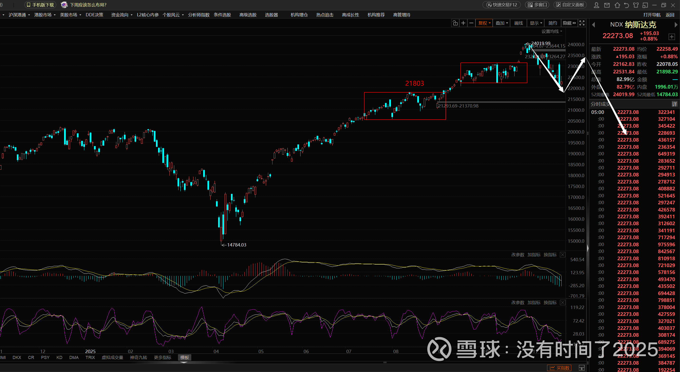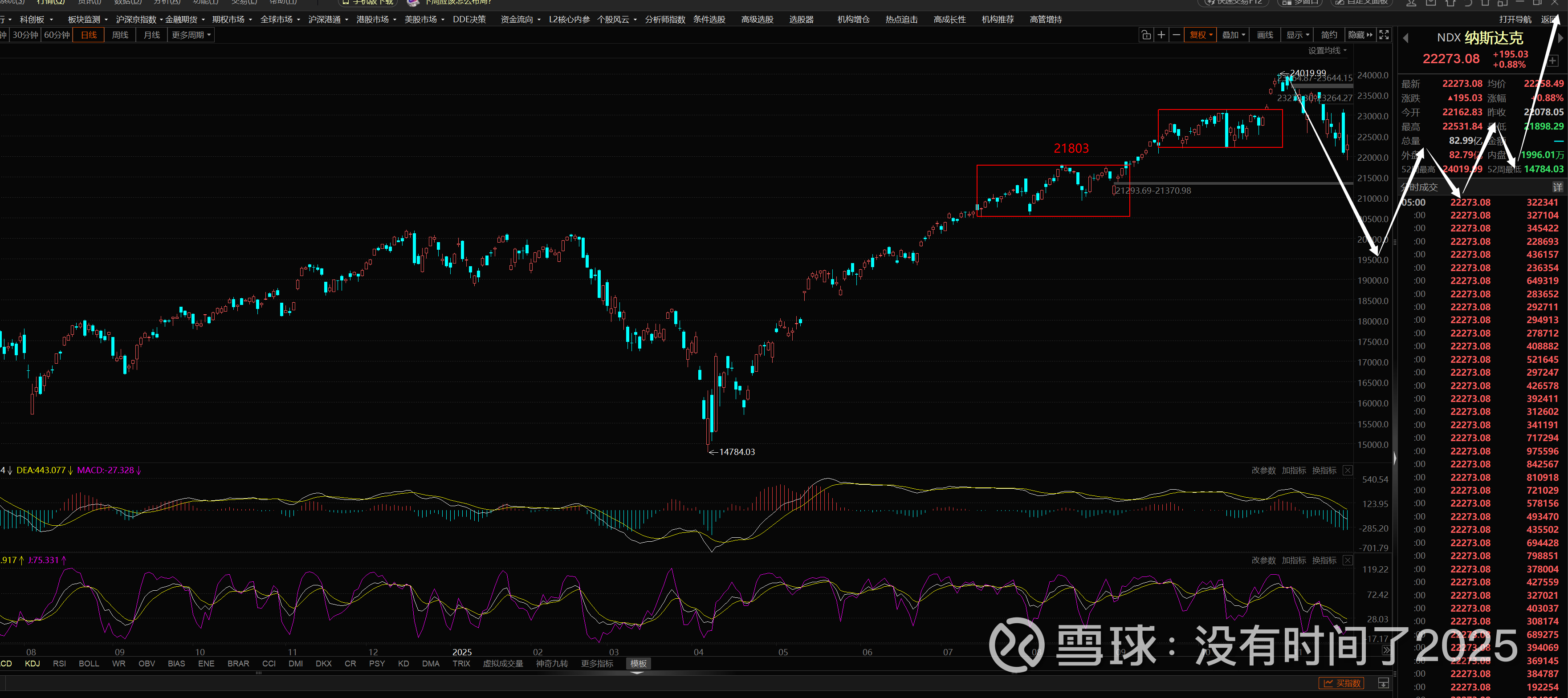 纳斯达克指数,我认为前面的高点24019是中期高点,纳斯达克指数要经历类似今年年初的这种中级下跌调整。
