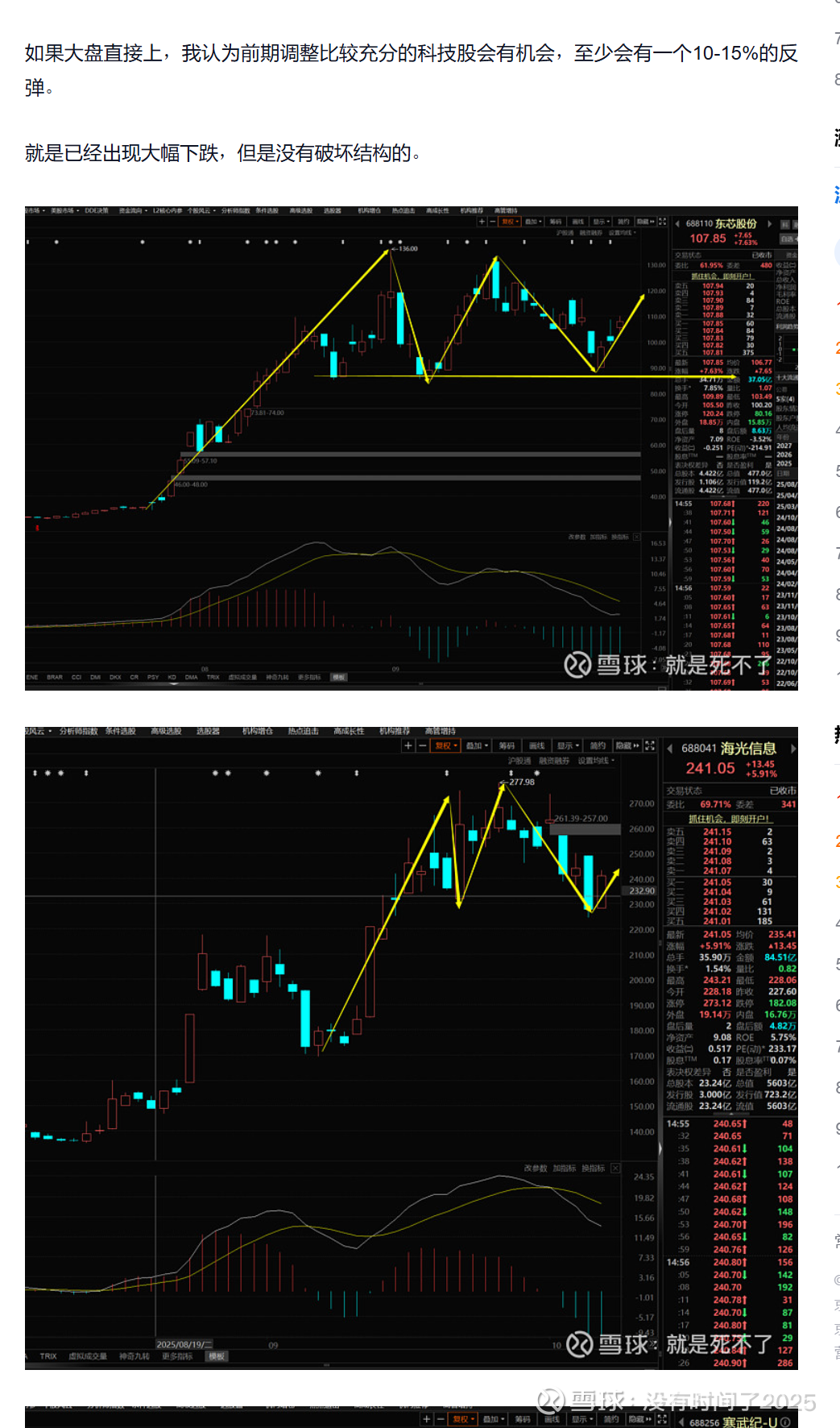 如果双创真的做一个3卖后延续下跌,那么高位科技股,特别是那些价格炒的过高的下跌目标是打5-6折。