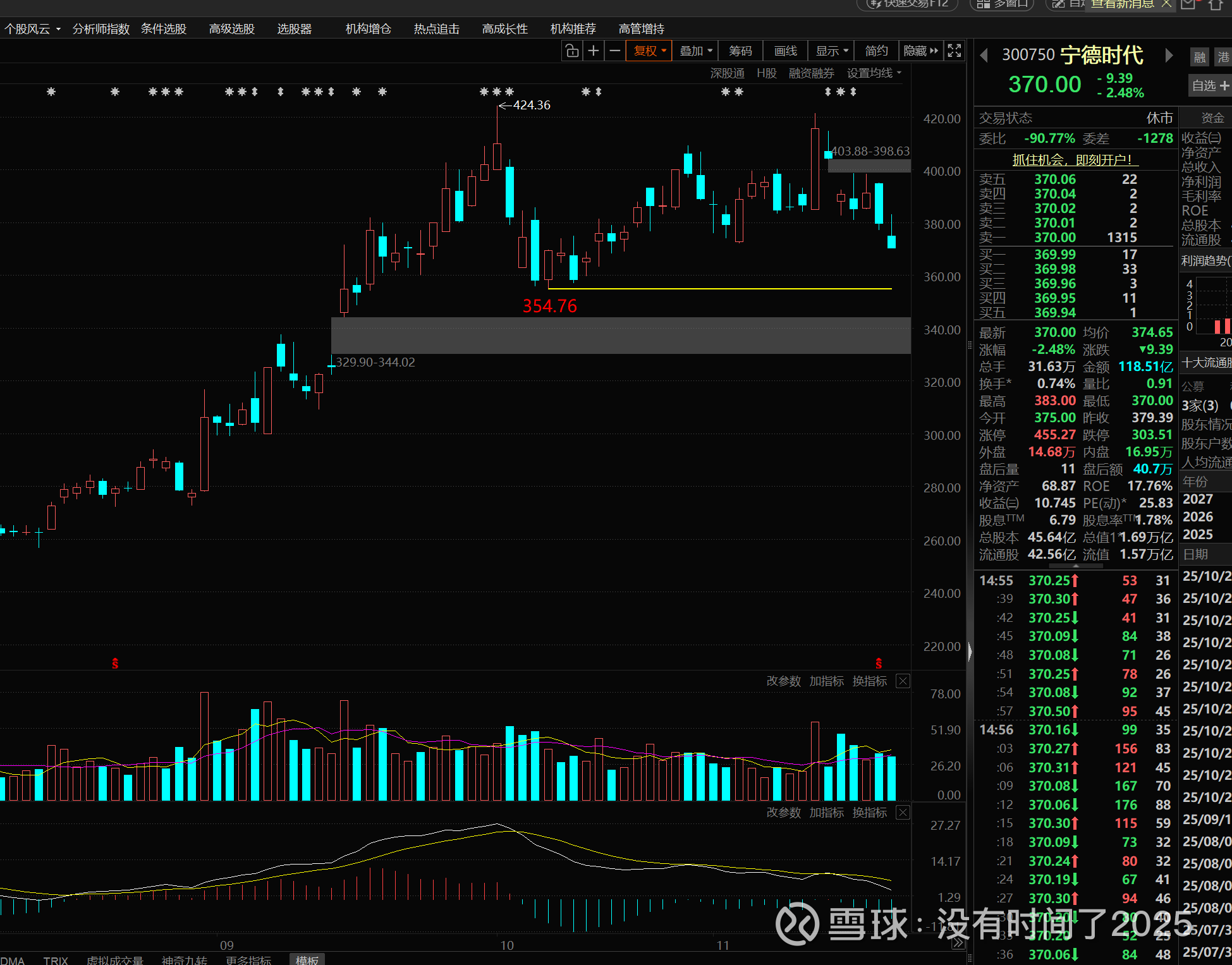 如果你在364的价格买入宁德,然后跌破354卖了,止损10块钱。