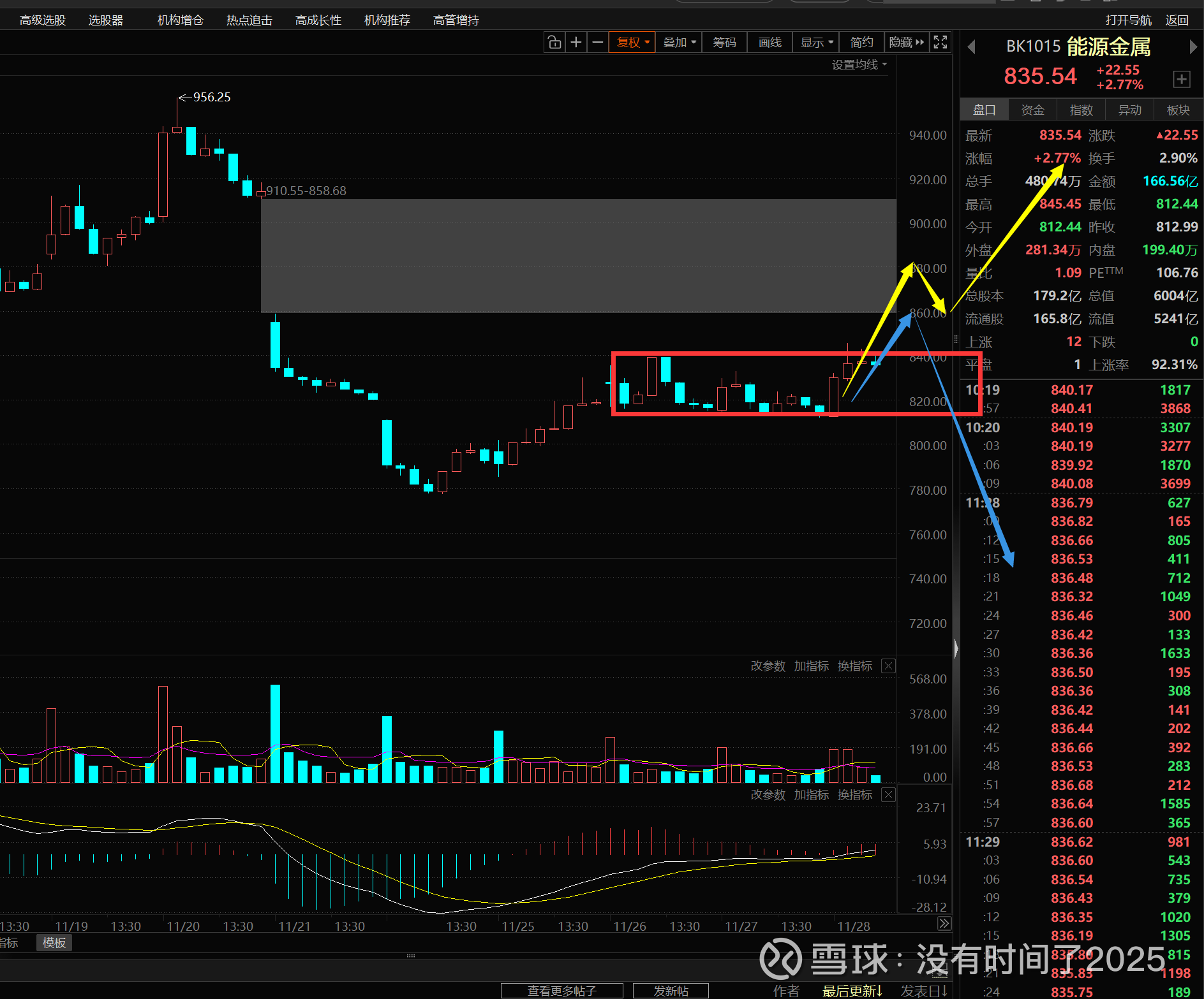 能源金属今天要稍微注意下,如果还是上不去,30分钟的级别上就要开始减了。