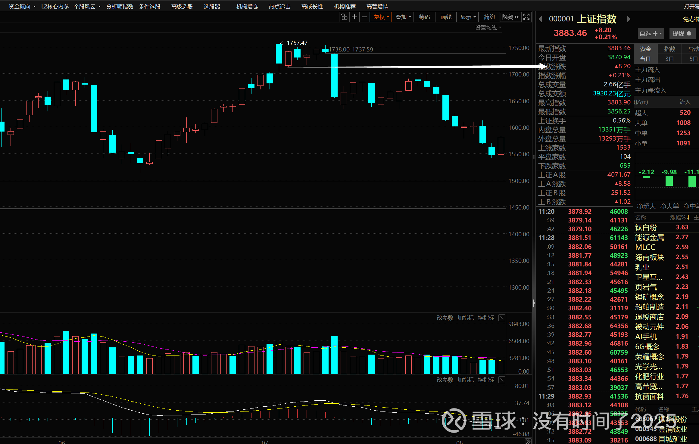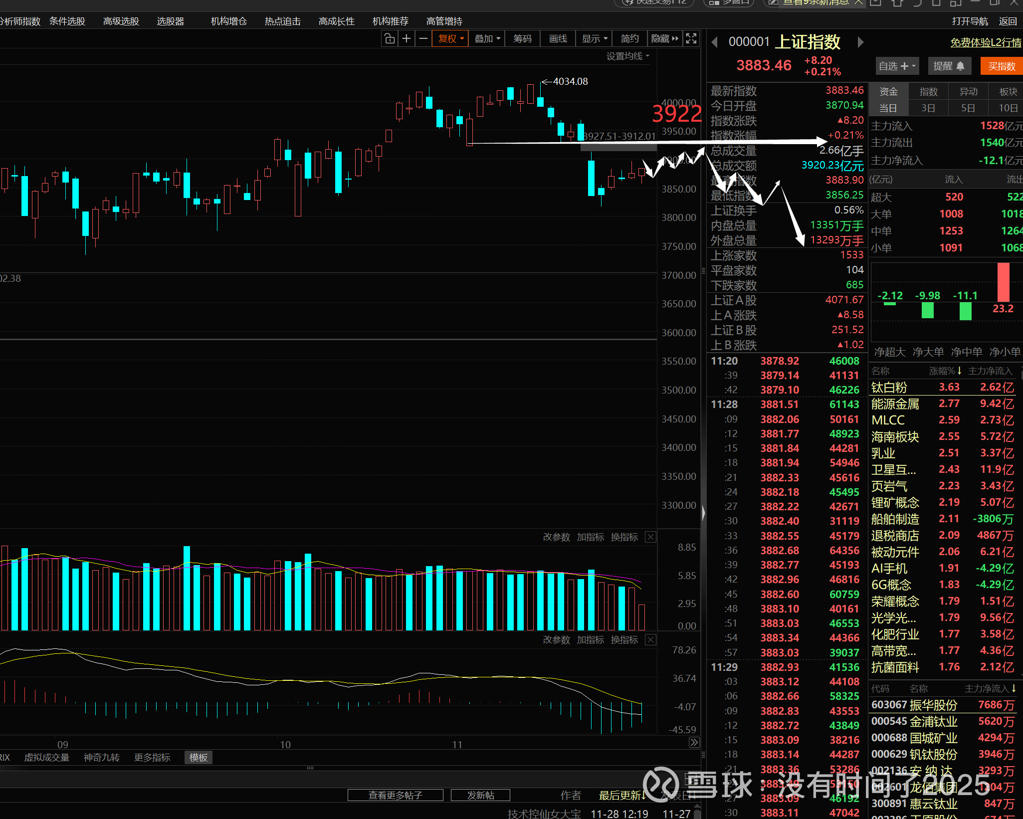 早上10点一波杀跌,跌破了3861,半导体和券商止跌回稳把指数又重新带了上来。