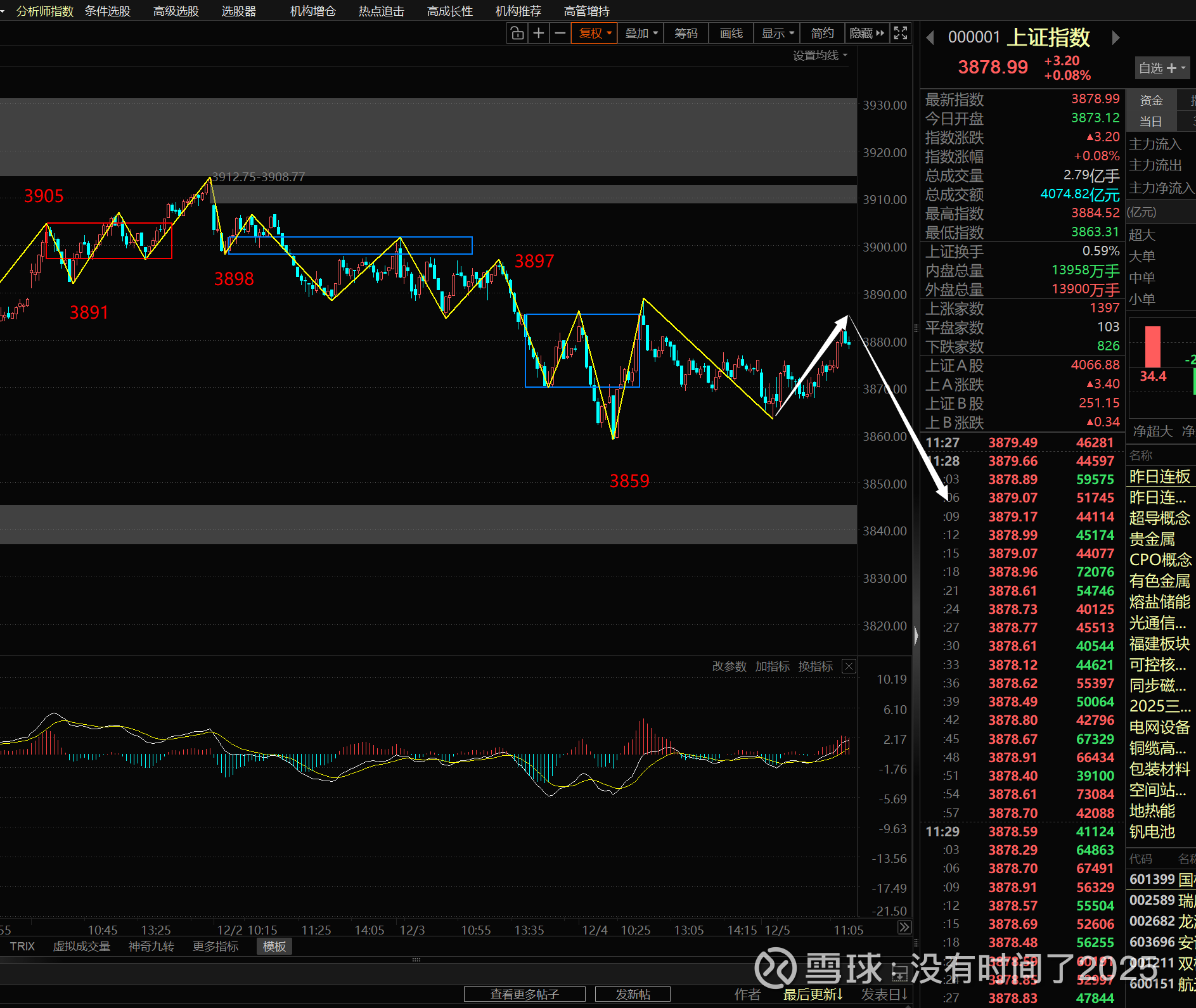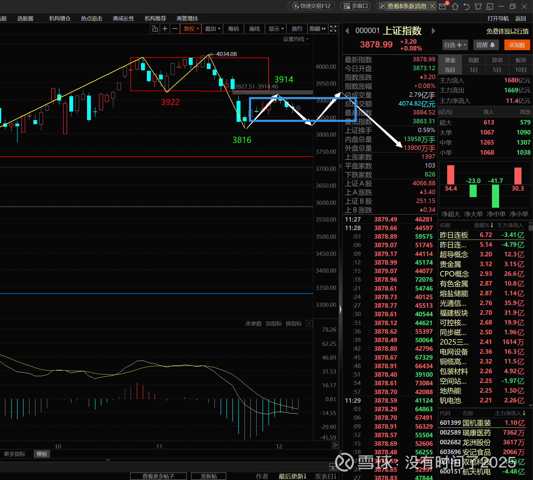 如果跌破3859后又被拉回,日线图上还会冲一次3914,假如还是过不去,那么后面3816被跌破的概率就非常大。
