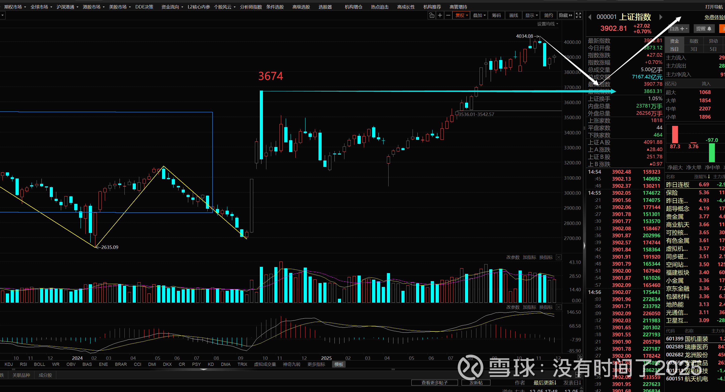 今天大盘跌到3863距离破位一步之遥,上午半导体拉,下午是券商和保险拉。