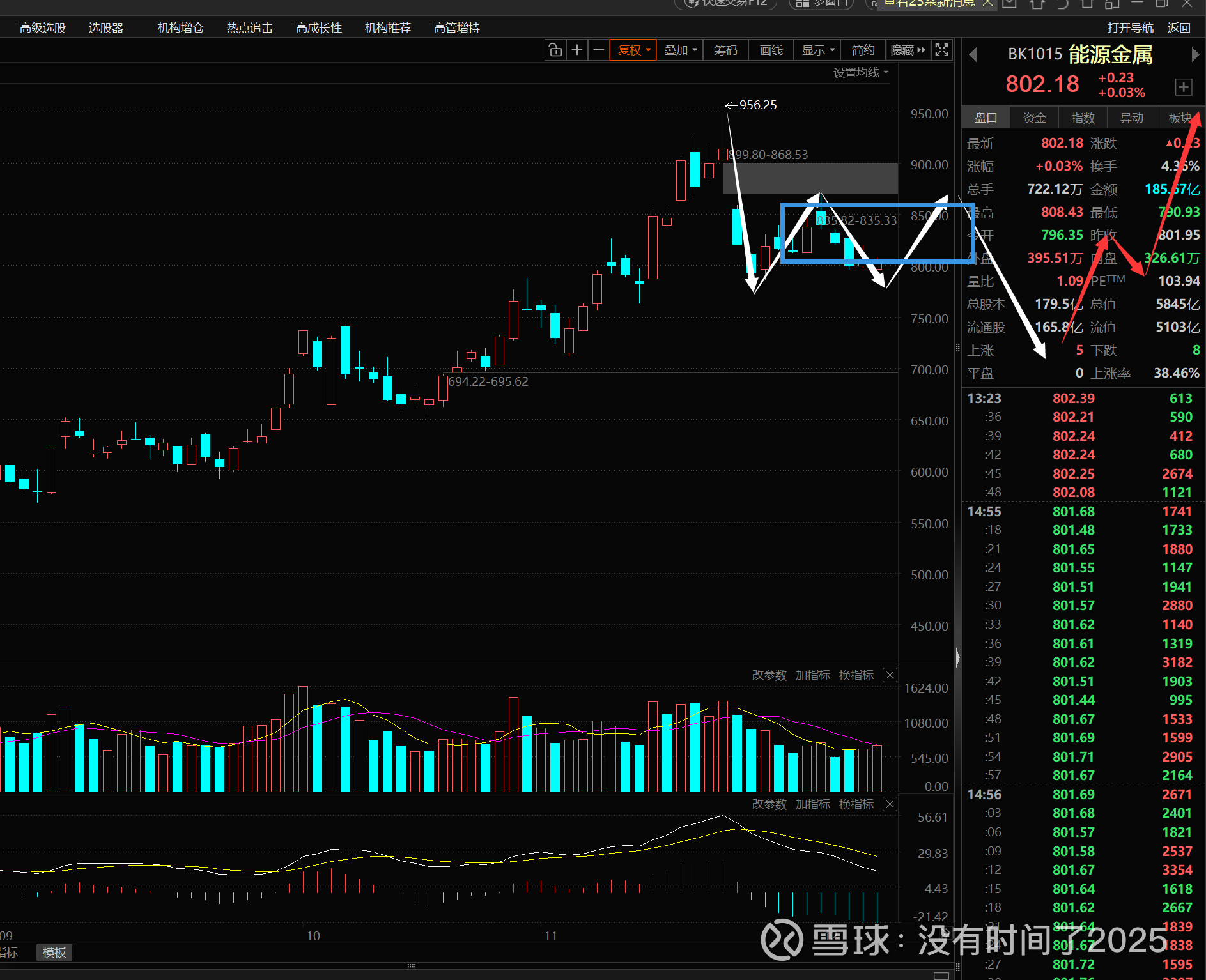 能源金属,板块只要不新低, 还有一次反弹的机会,本周一的高点无法过去就会形成下跌中枢后继续往下,然后再起来。