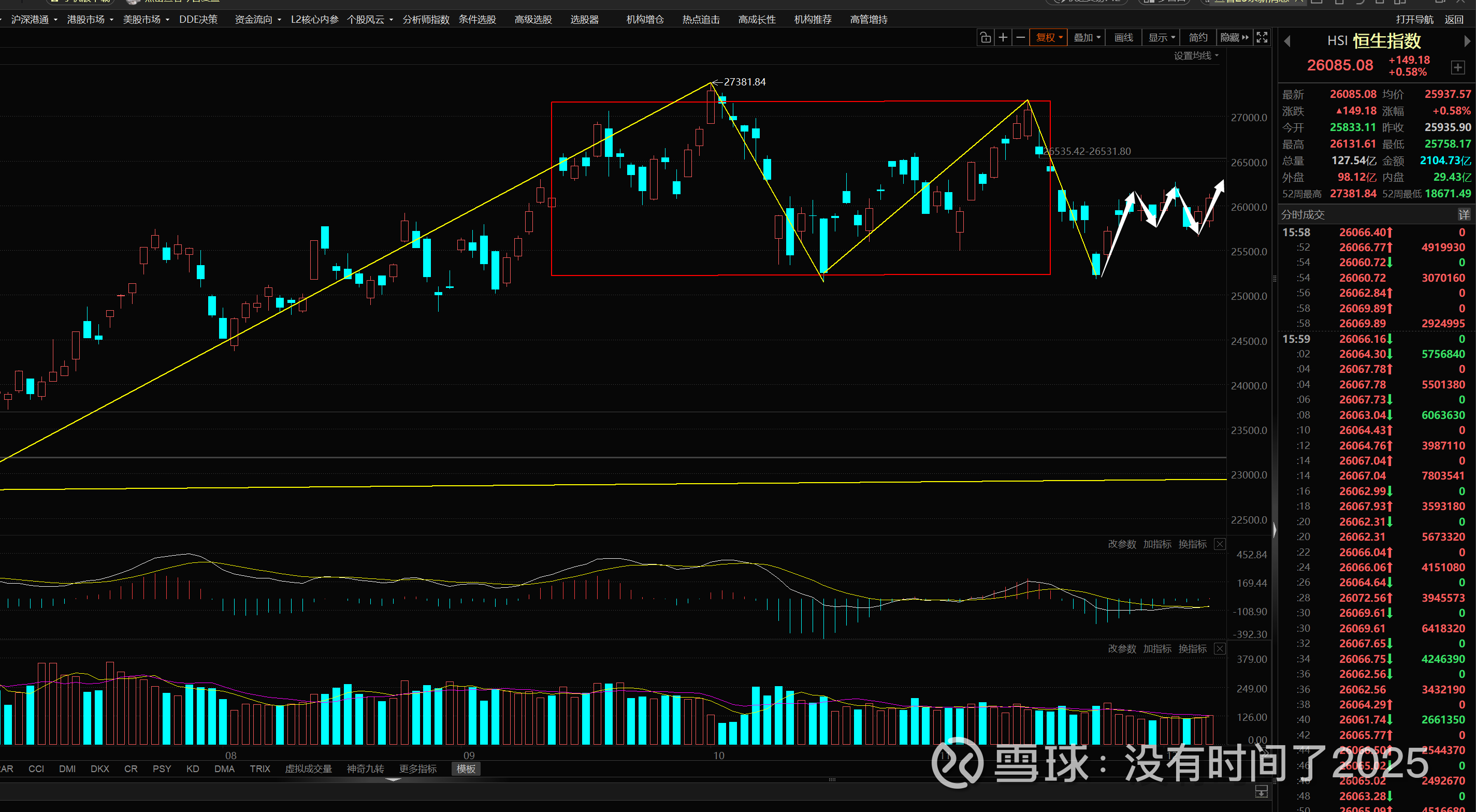恒生指数,现在是一个日线的2买叠加一个30分钟的2买,下周要变盘了。