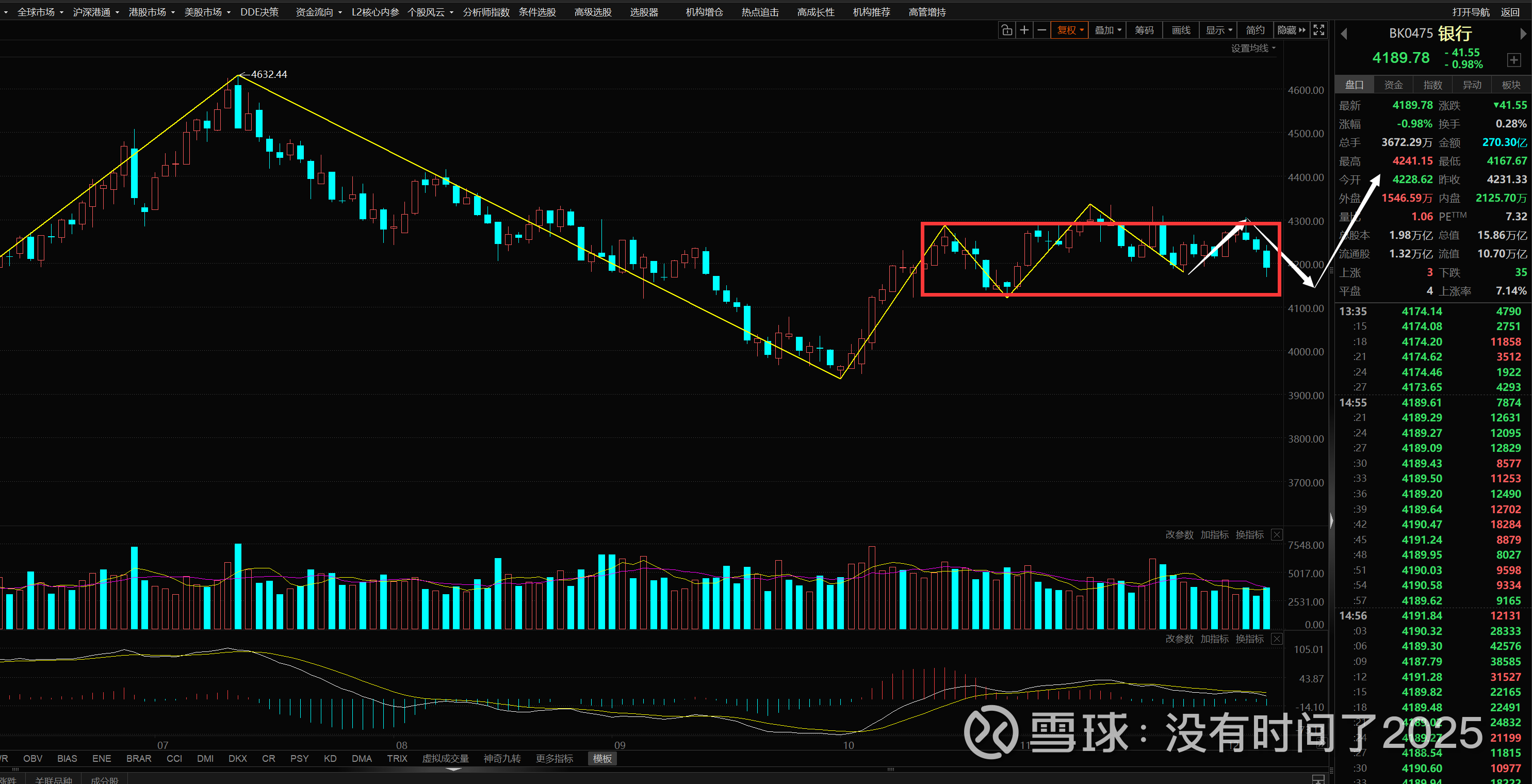 最后说一下银行,因为反弹还在延续,所以银行持续走弱。
