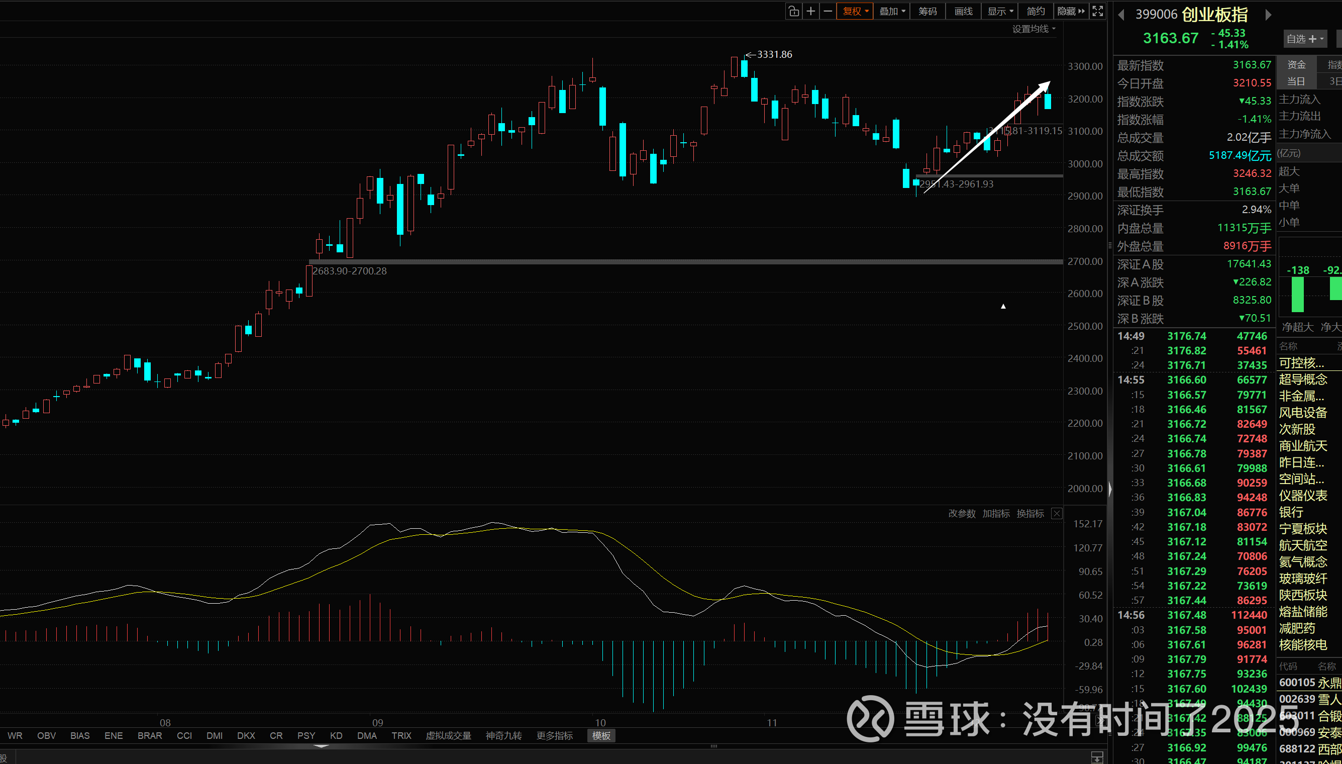 创业板现在的走势还没有完全的终结,或者说创业板暂时还没有顶部迹象。