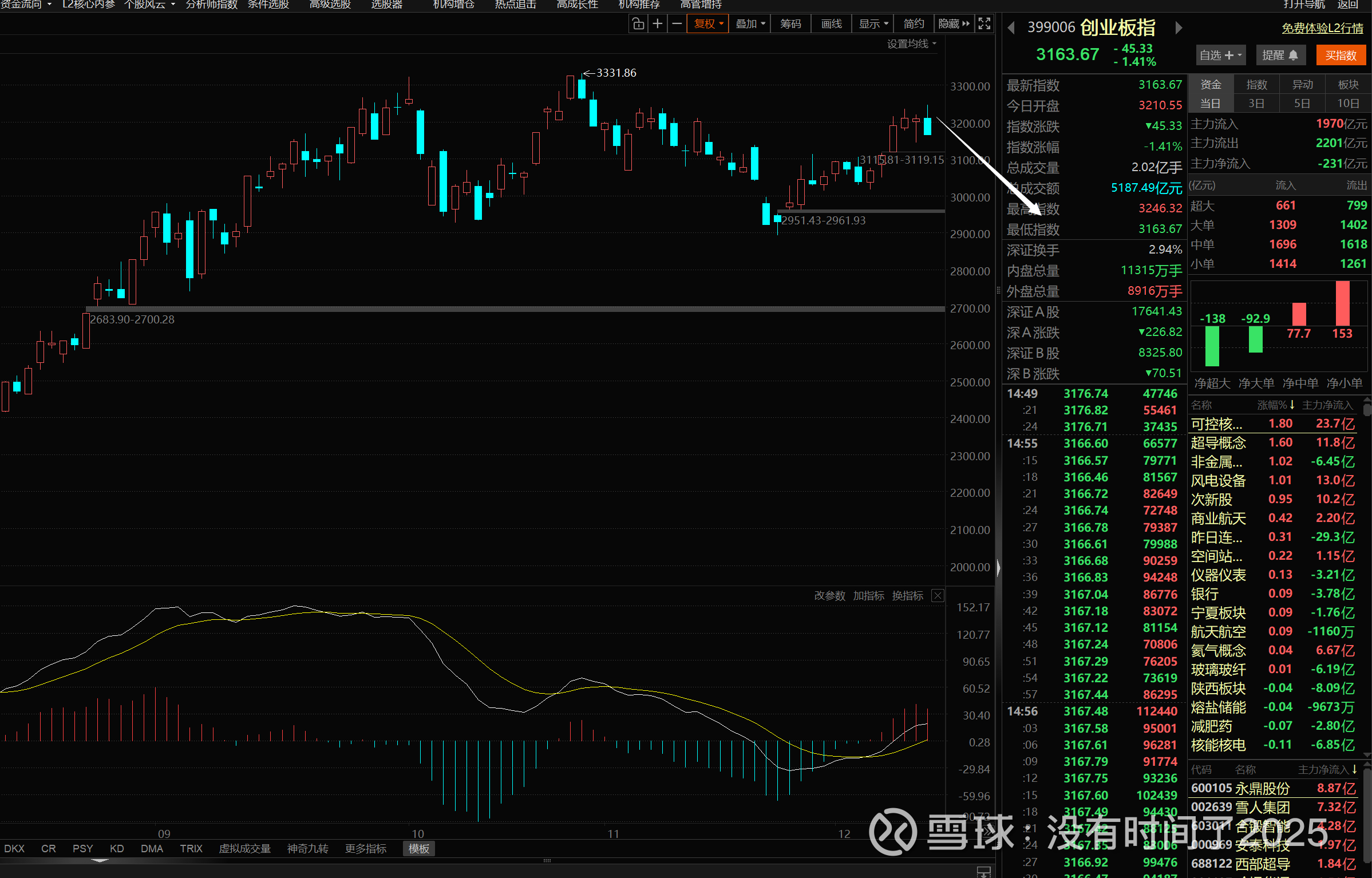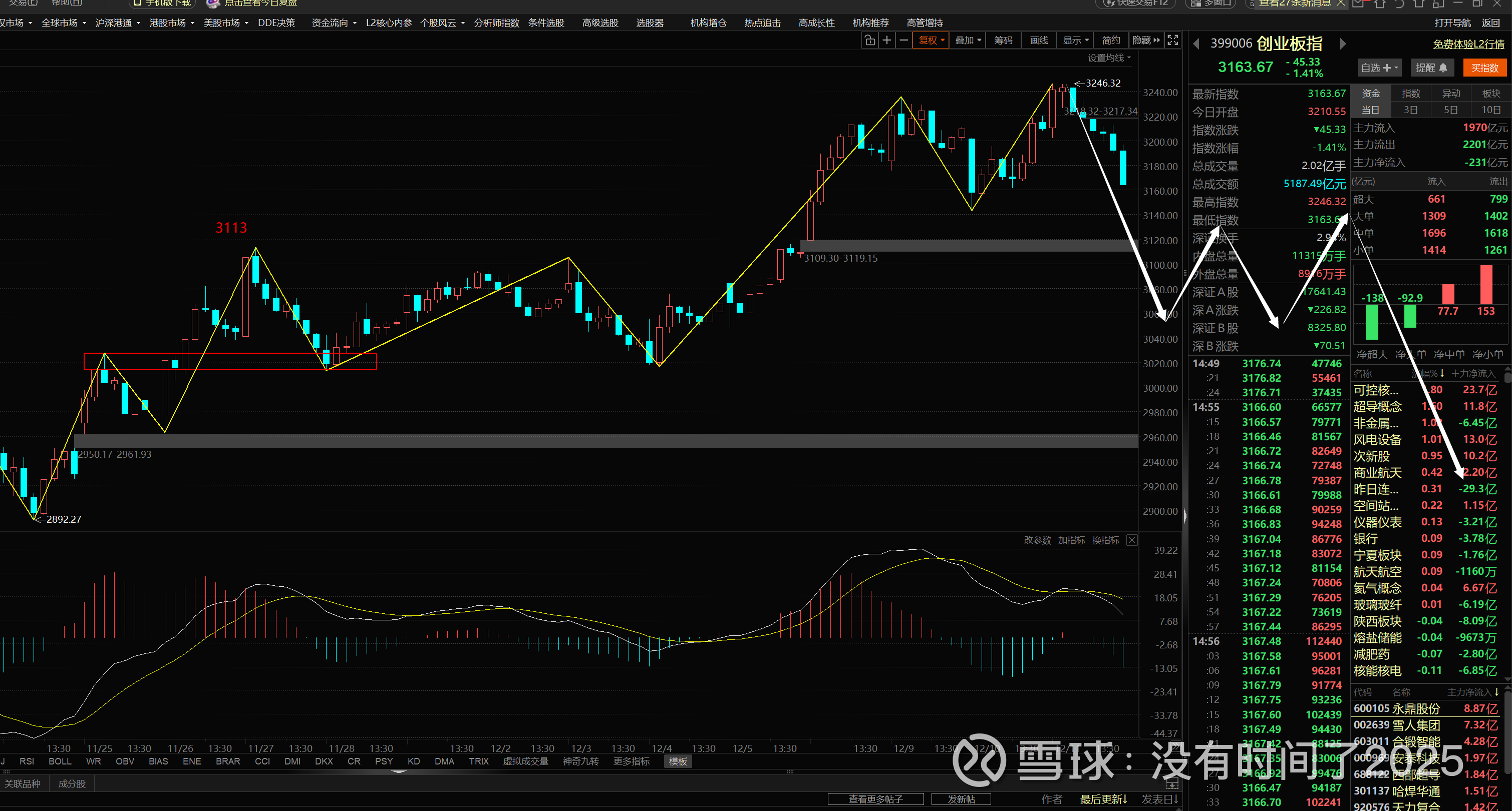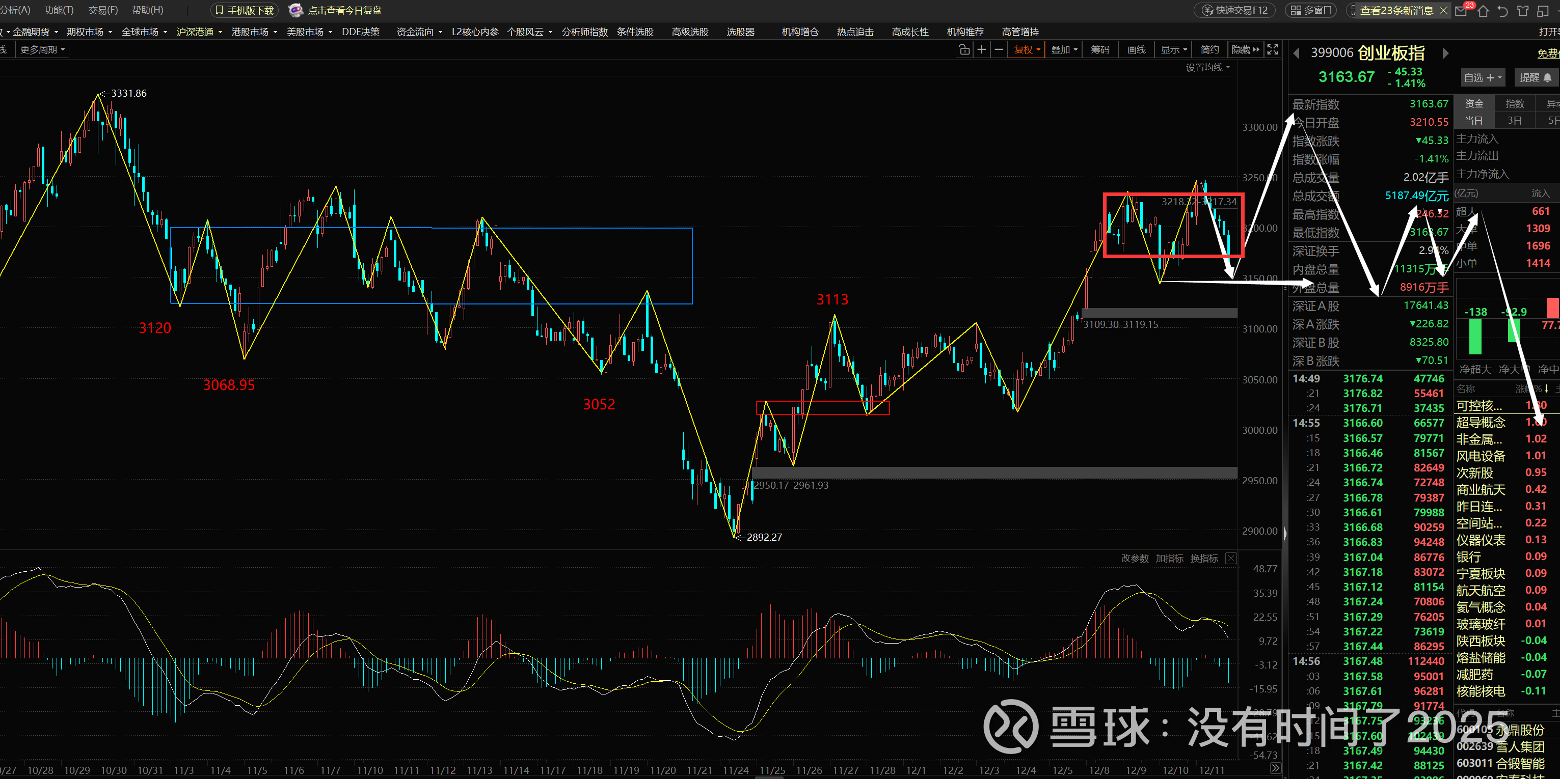 等于说创业板今天的高点就是日线的2卖高点,要走一笔日线的下跌