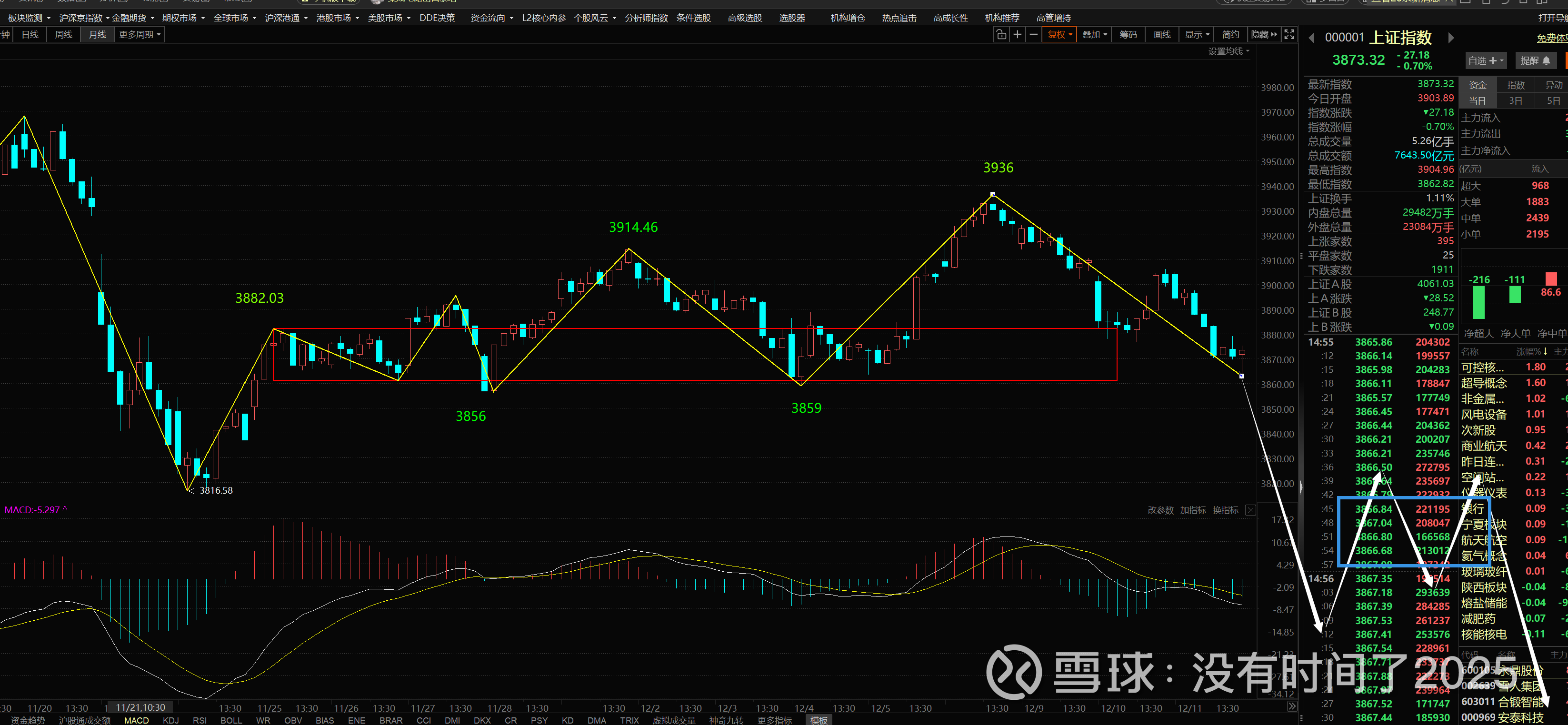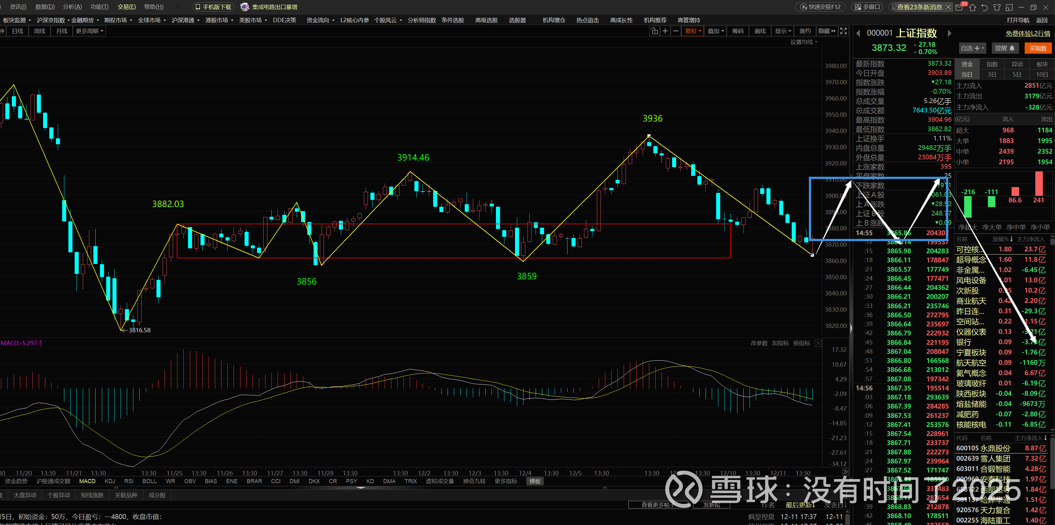 如果科技股这么走,主板在3860附近止跌后还有一次反弹,只要反弹无法新高并且出现至少是针对3882的3买,后面还是要下跌。