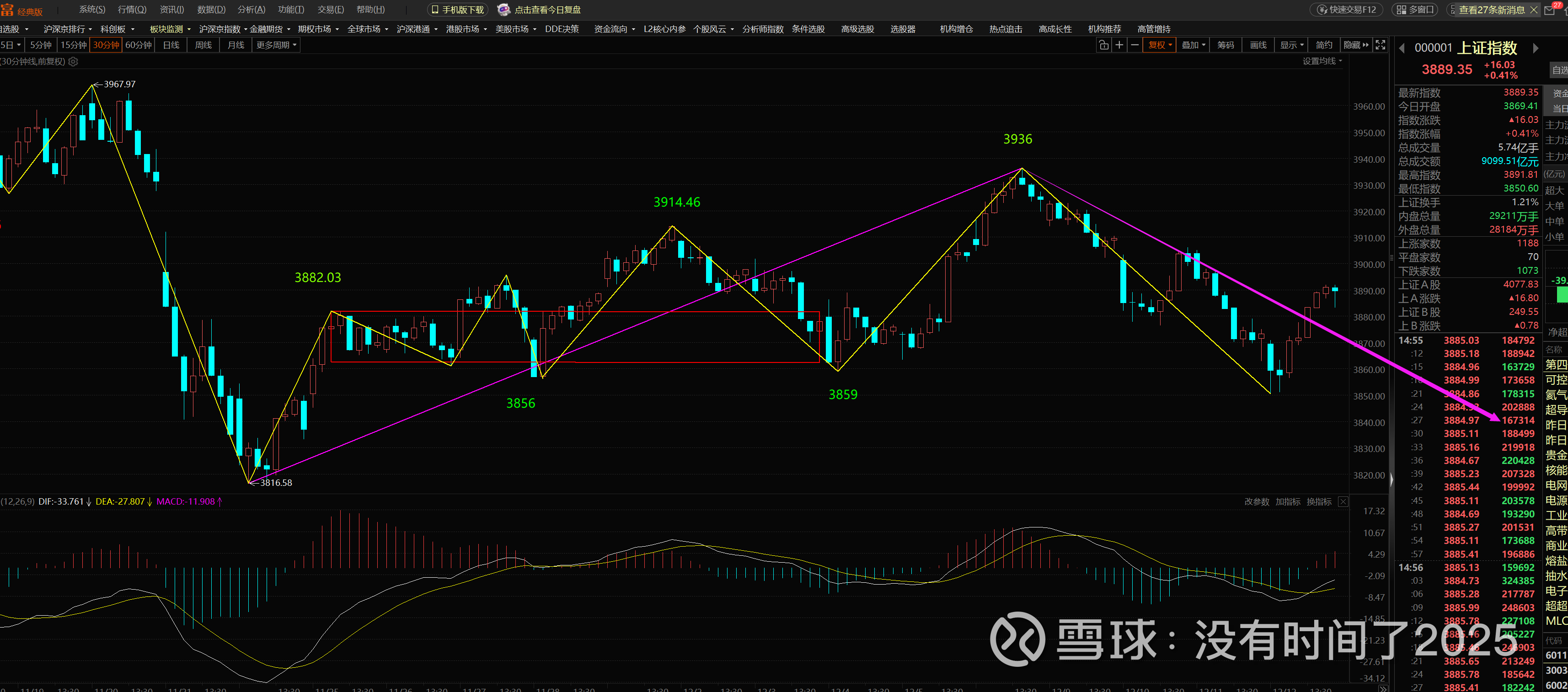 下面是上证指数日线图, 3936就是日线的2卖。目前日线2卖向下中。