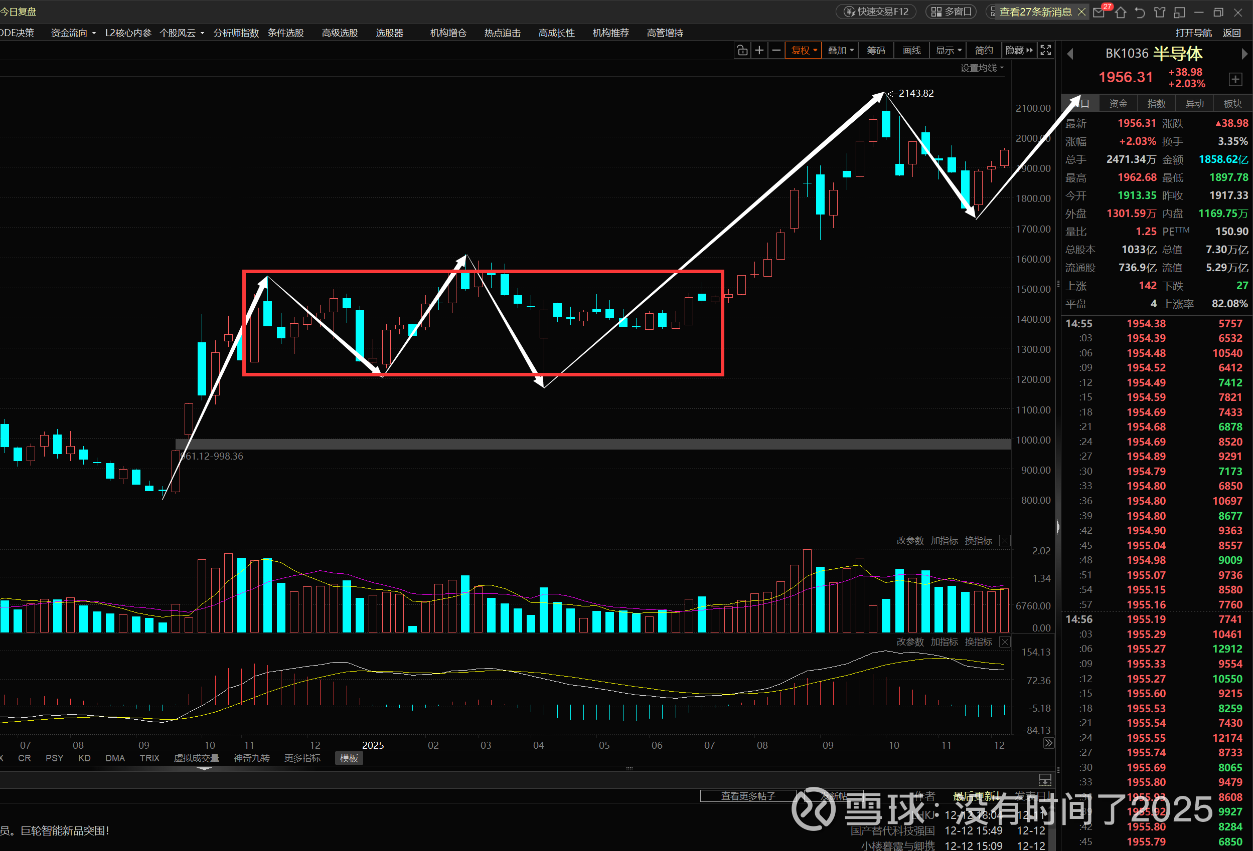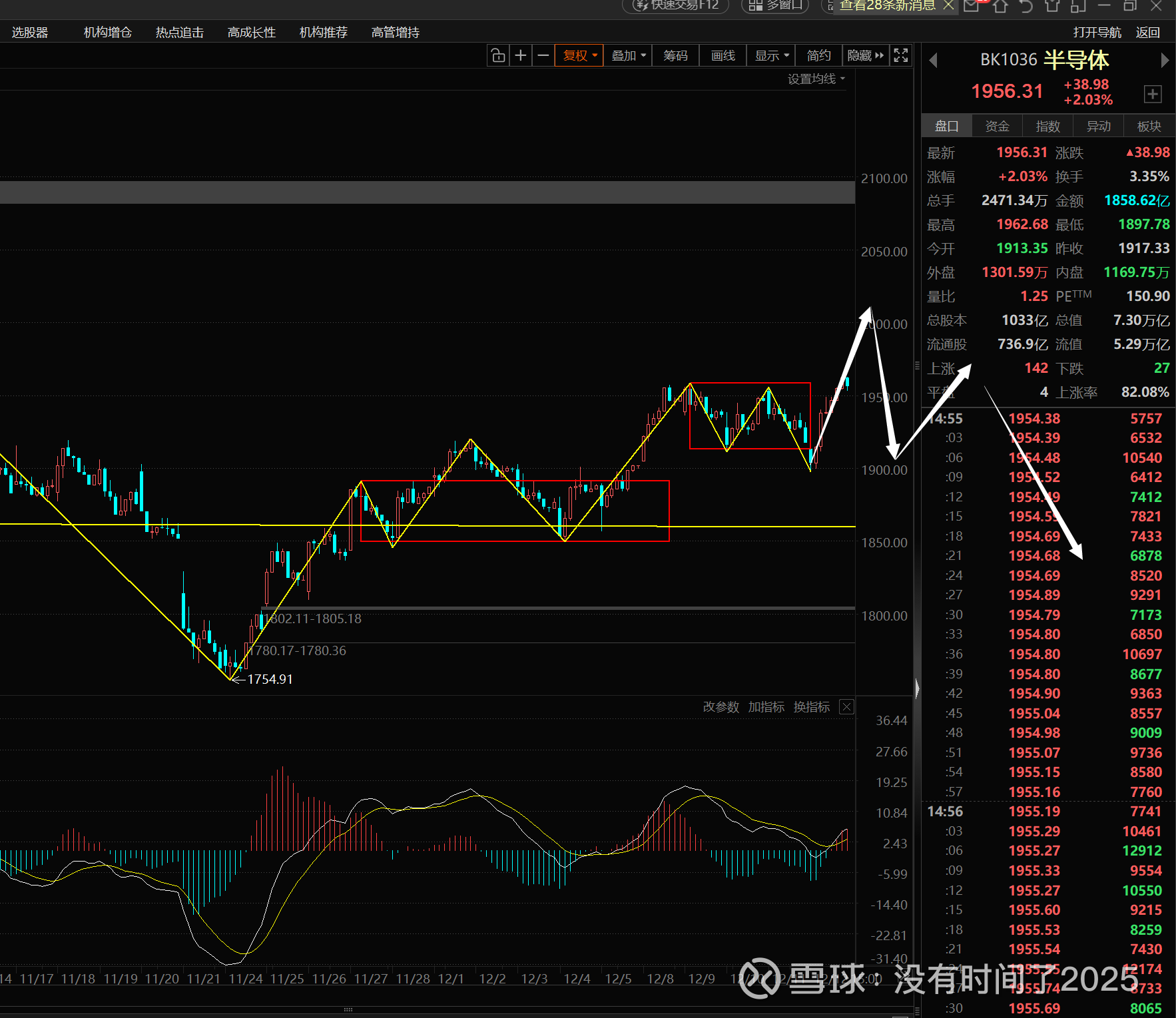 半导体日线的这笔内部,现在是两个30分钟中枢,下周如果往上新高力度衰竭,就会引发日线的回调,跟创业板一样。