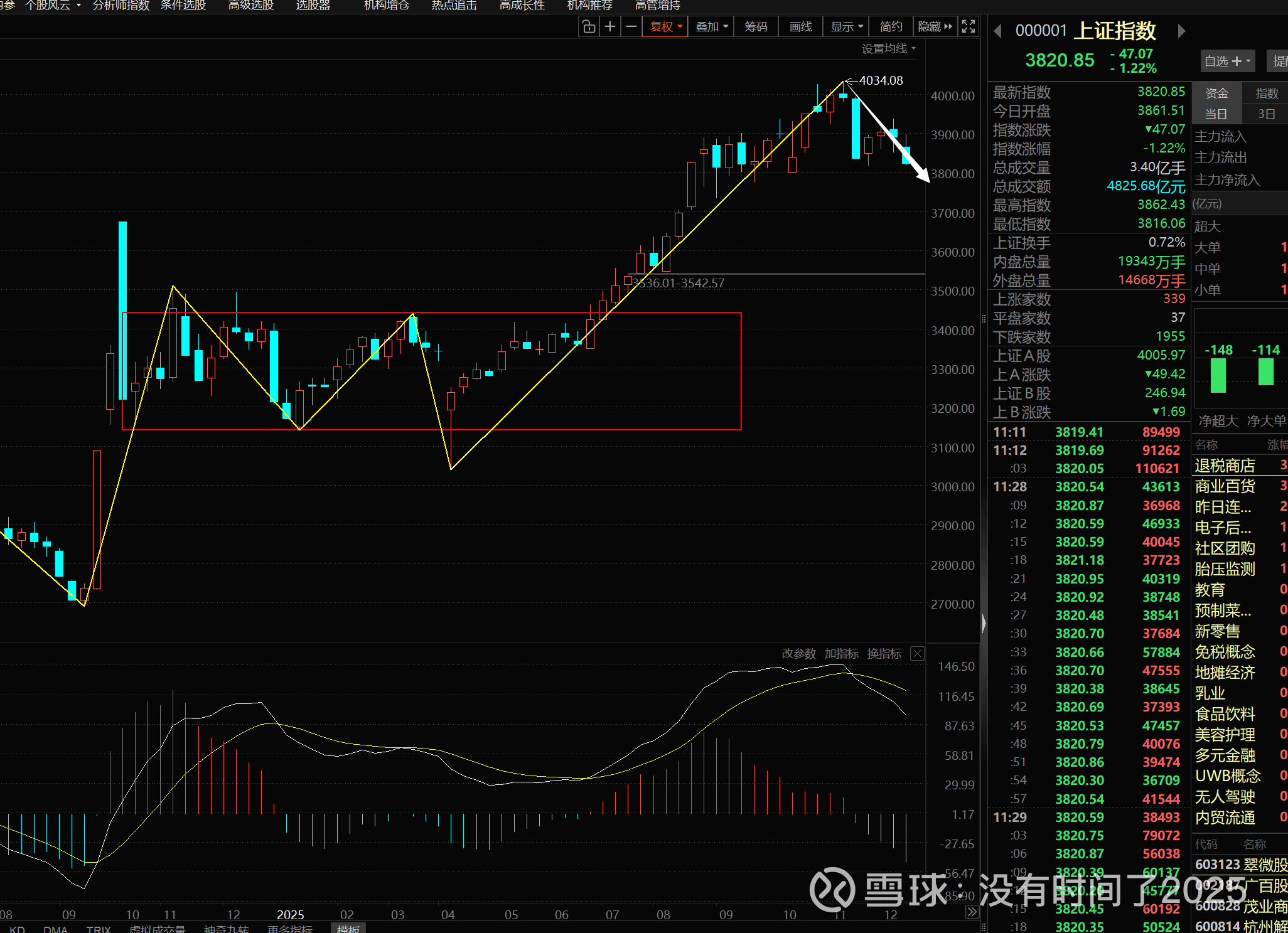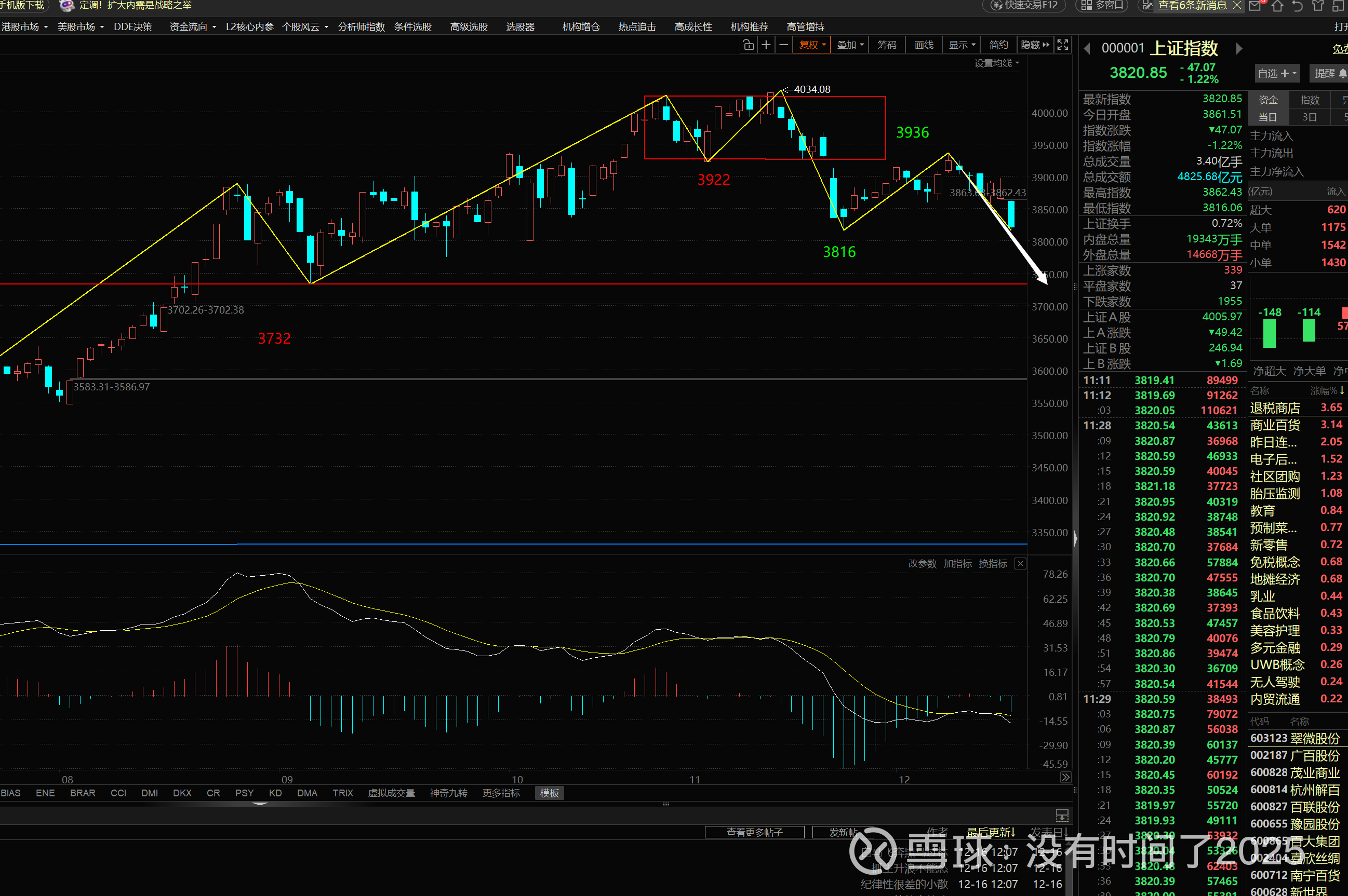 今天跌破了3816,现在已经确认是周线的一笔下跌中。