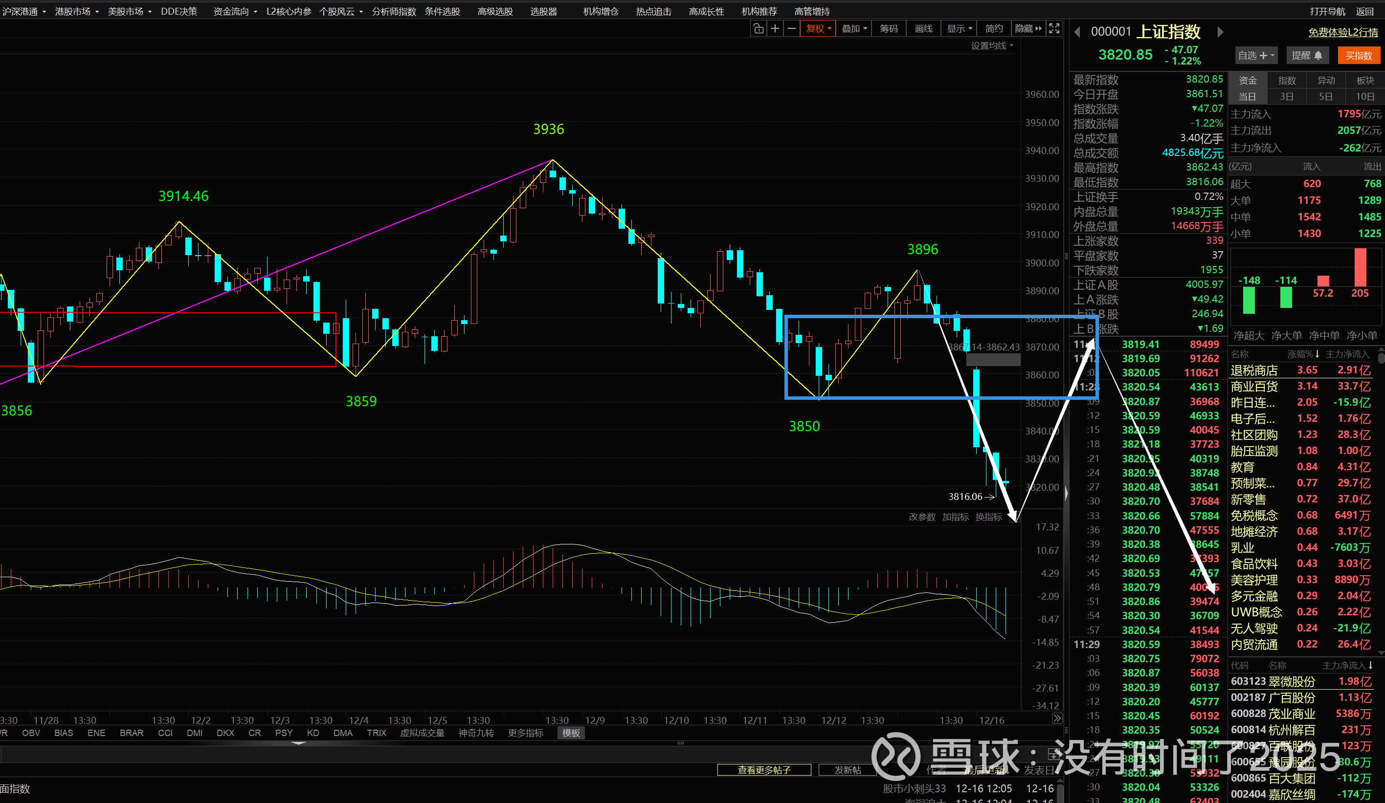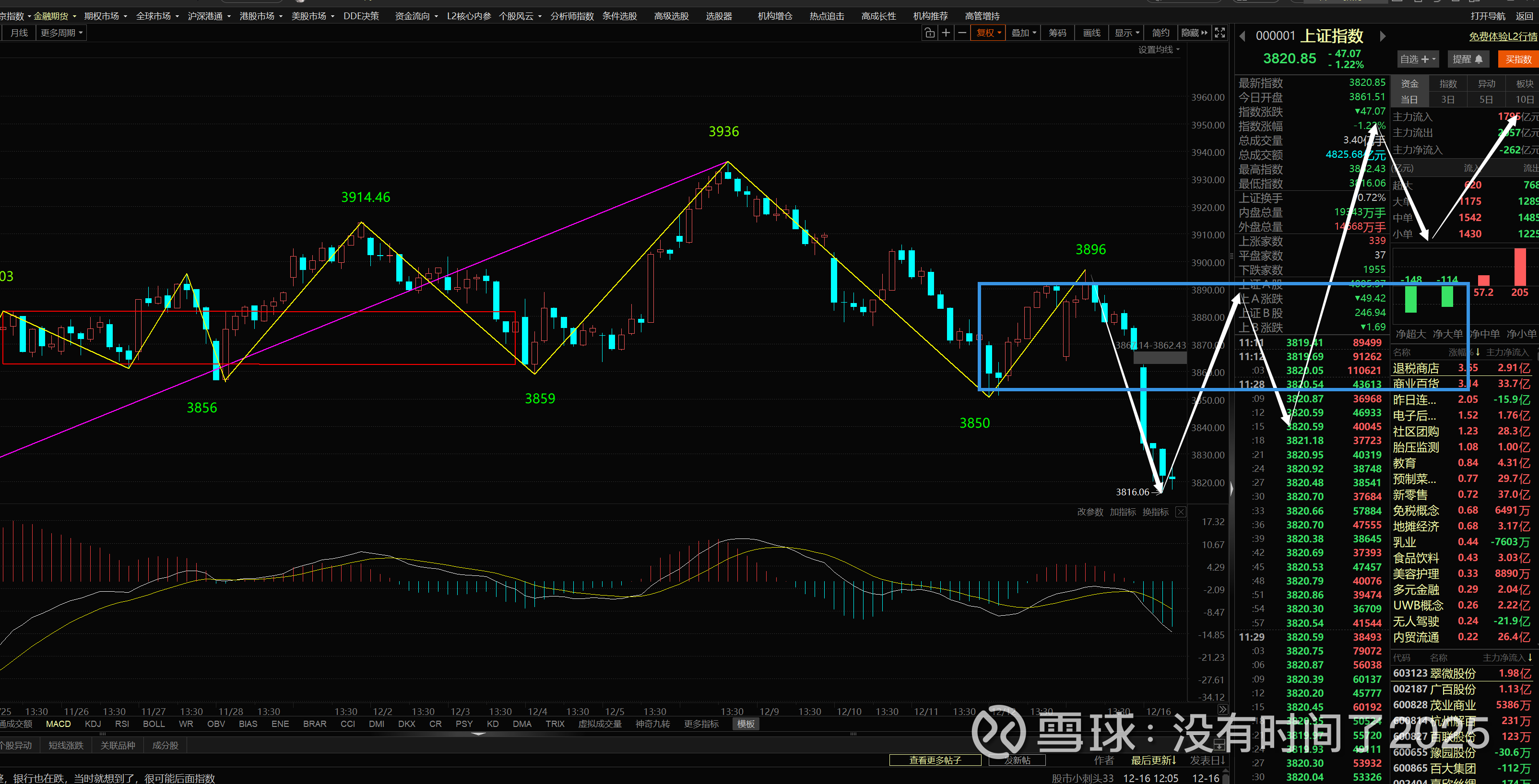 就算出现盘背反弹起来,只要无法站稳3896,就是构筑30分钟下跌中枢继续下跌的节奏。