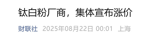 我看到财联社在8月22日发了一篇《钛白粉厂商,集体宣布涨价》的文章:
