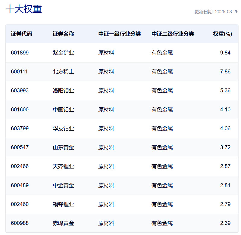 以$有色龙头ETF(SZ159876)$ 为例,它跟踪的是“中证有色金属指数”。