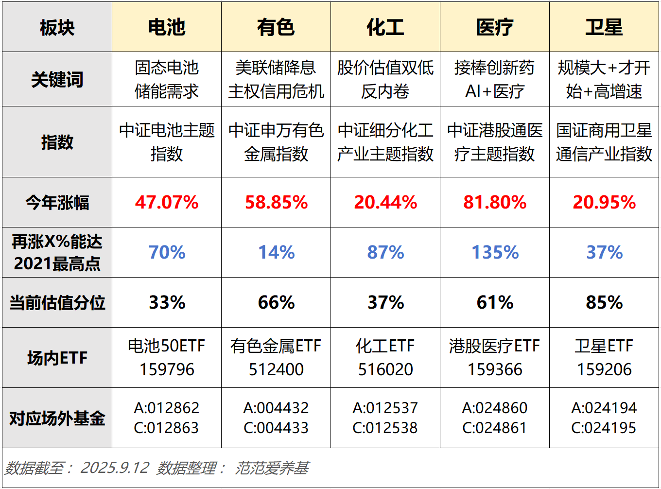除了科技,还有这么5个方向值得关注:电池、有色金属、化工、医疗、卫星。
