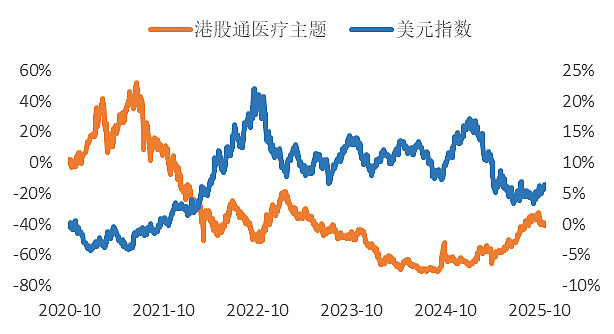 我看到有博主做了相关性统计:当美联储降息,美元指数走低时,港股通医疗主题指数上涨。