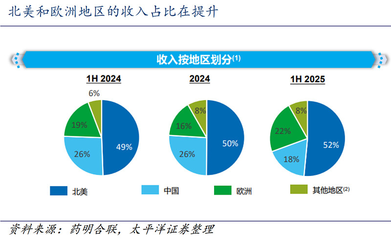 更值得一提的是昨天反弹力度最猛的$药明合联(02268)$ ,根据太平洋证券研究数据:药明合联2025上半年海外营收占比高达82%,其中,北美、欧洲为主要增长来源,分别占比51.5%、22.4%。