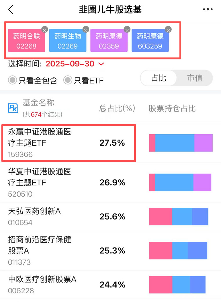 我用韭圈儿APP筛了一下,可以看到,159366同样是“药明系”含量最高的ETF。因此,在CXO龙头股大涨带动下,港股医疗ETF(159366)在昨天尾盘同样大幅拉升,收涨2%