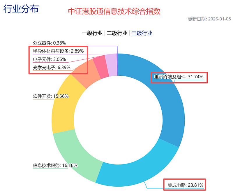 从细分行业构成来看,该指数最大的特点是其成份股由“70%硬件+30%软件”构成,重仓半导体芯片+电子+计算机软件。