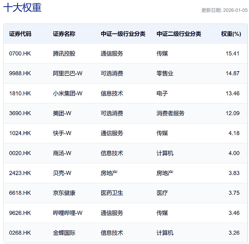 它聚焦互联网平台经济——电商、社交、线上医疗、本地生活、在线广告——几乎不含芯片、硬件制造、通信设备,更加聚焦以互联网为主的“AI应用端”。