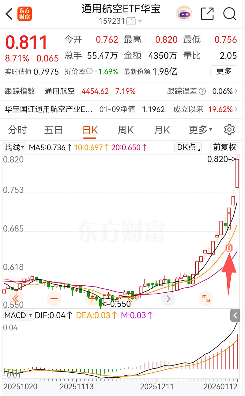 我就是上周追的$通用航空ETF华宝(SZ159231)$ ,昨天大涨8.71%,目前已有超13%的持仓收益率![]()