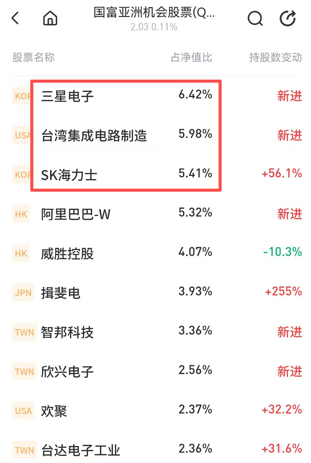 国富亚洲机会股票的前3大重仓股正好是最受益于这波“芯片涨价潮”的三巨头:三星、SK海力士、台积电。