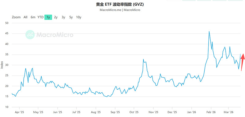 比如,单就目前震荡飙升的黄金ETF波动率来看,就不是一个好的加仓时机。