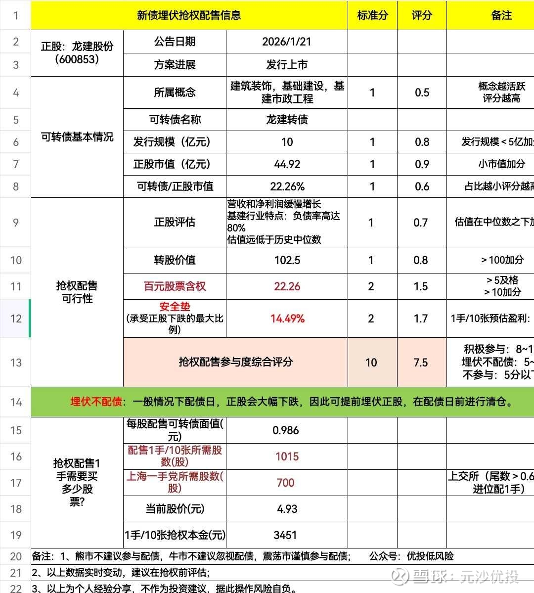 等了大半年的龙建股份终于要上市发行可转债了,之前我就潜伏了好久,也不枉我等待这么久,现在回头来看,安全垫依然很高,按上市每手50来算,安全垫有14%。