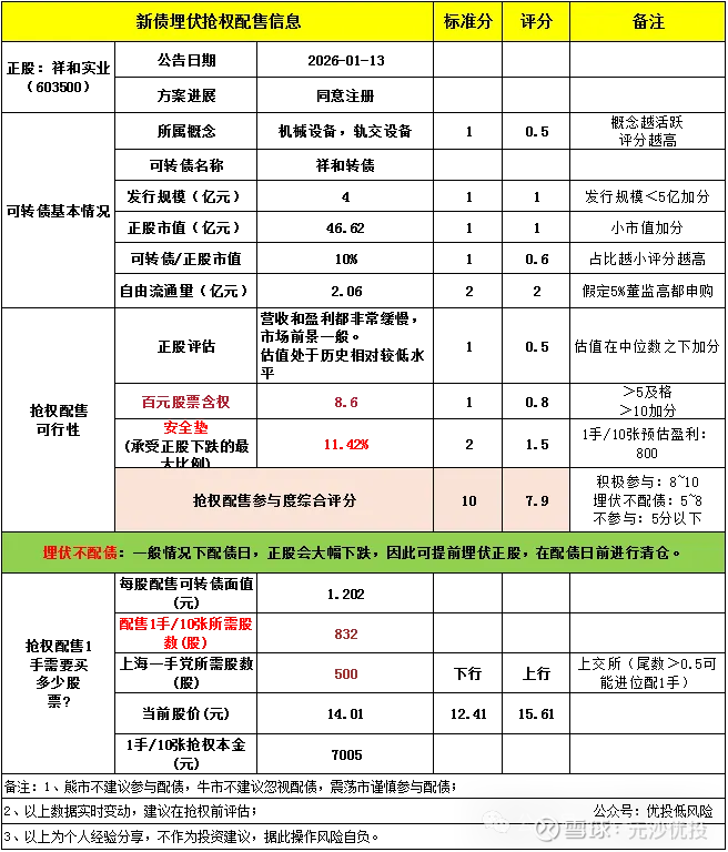 配售1手只需要500股,总投入7000块,风险收益比不错,我已经在其股价12元的时候,埋伏好了,到时再看看要不要配债,还是直接获利了解。