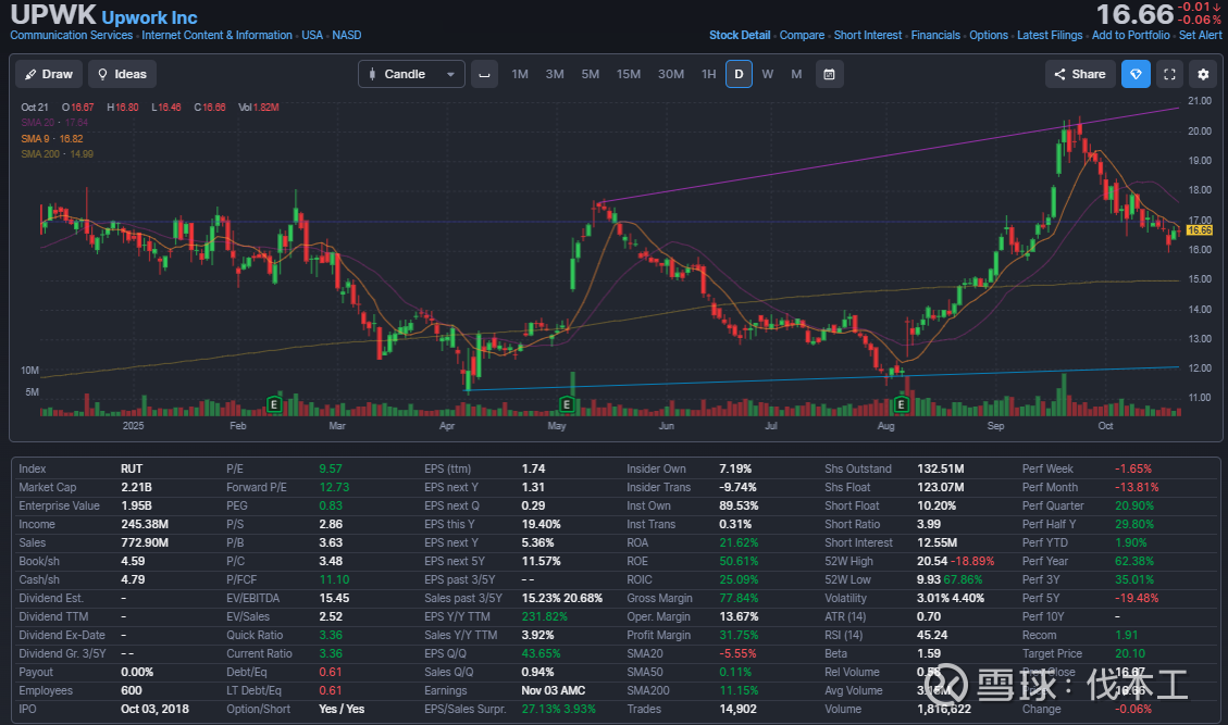 三是人工智能渗透招聘流程自动化,将错时面试、自动摘要、自动。。。,过去需要企业内部流程化的,现在AI agent代替完成,UPWK正向从价值链上向上迁移,简直有与linkin竞争的态势,后者曾被几百亿美元并购。