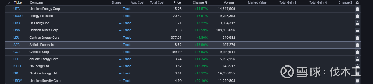 板块联动效应与AI能源需求:协议发布后,铀矿股迅速联动上涨,因为它强化了全球核能复兴预期。AI和数据中心对稳定、低碳电力的需求激增(预计到2030年核电需求增长30%),叠加地缘政治因素(如能源独立),刺激投资者涌入铀资源股。Ur-Energy(URG)CEO公开表示,该协议将利好美国本土铀矿商。
